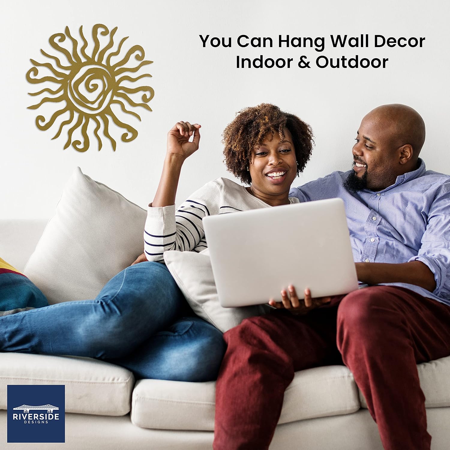 Riverside Designs Wacky Sun Metal Wall Art Indoor/Outdoor Decor - 24" Gold Rust Proof Wall Sculpture - Made in USA - Ideal for Bedroom, Garden, Home, Patio and Farmhouse