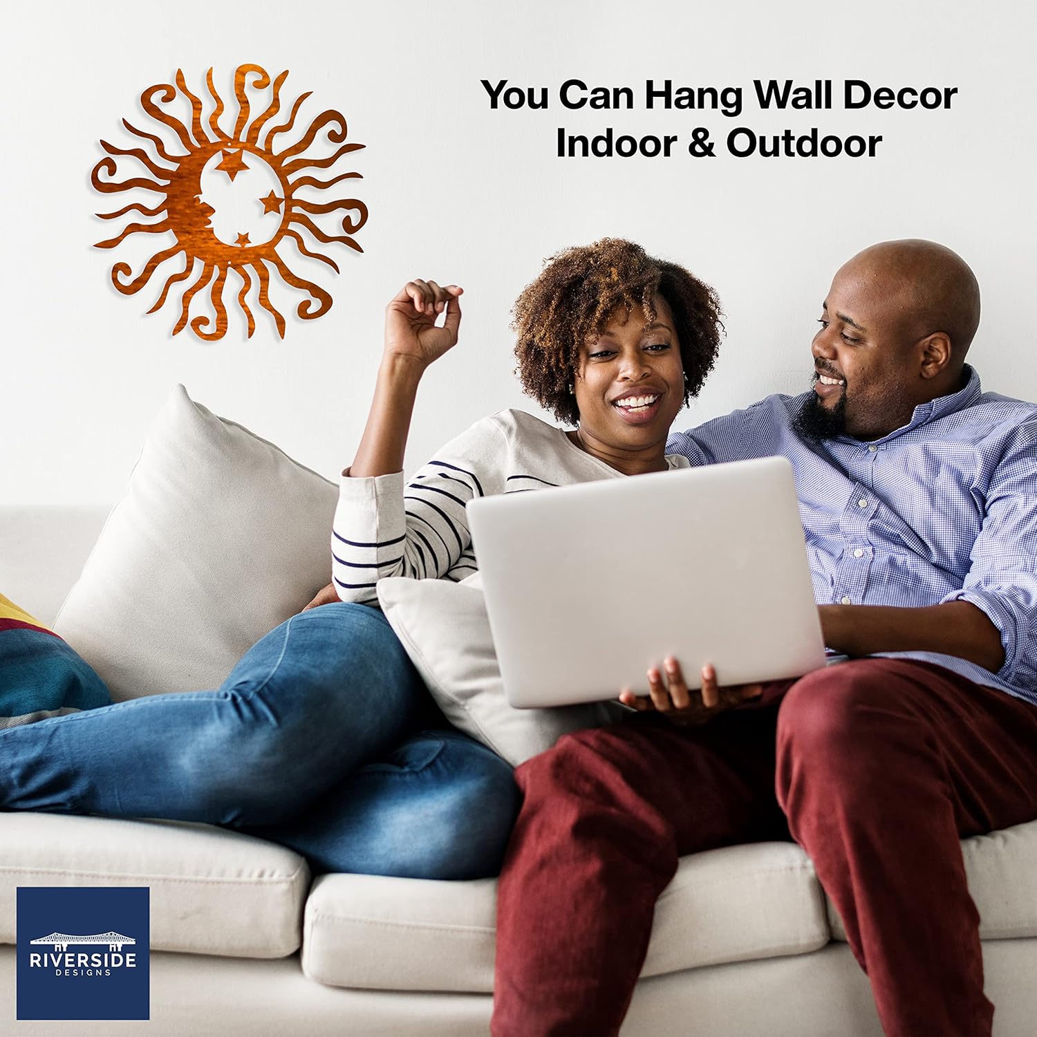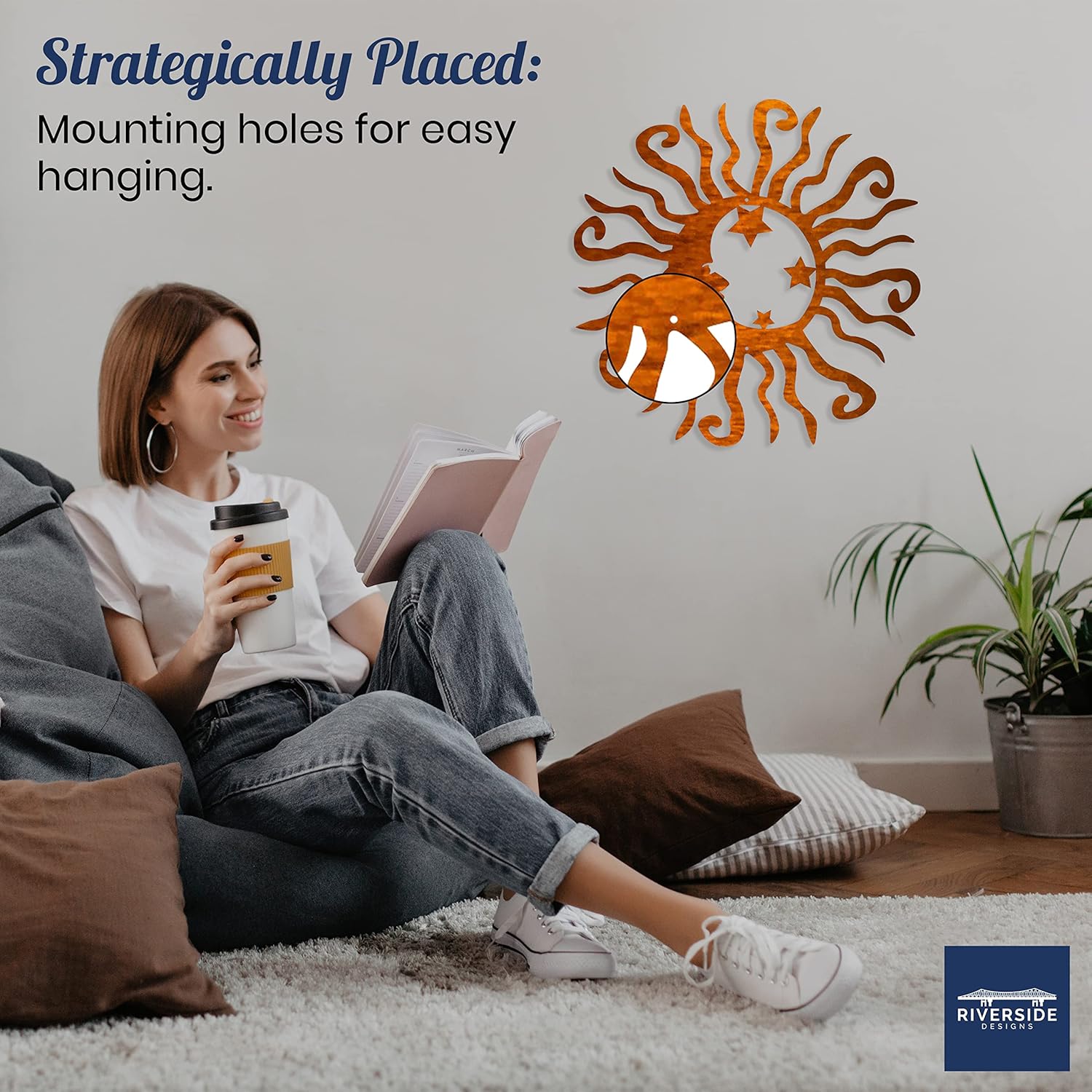 Riverside Designs Wacky Solar Moon Metal Wall Art Steel Outdoor Decor | Heavy-Duty and Waterproof | Made in USA (Copper, 36L x 36W)