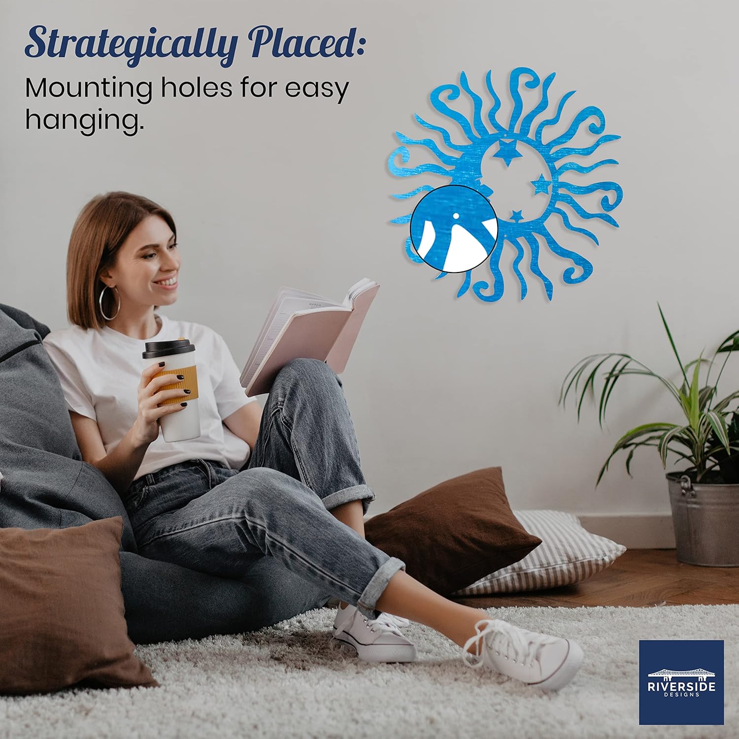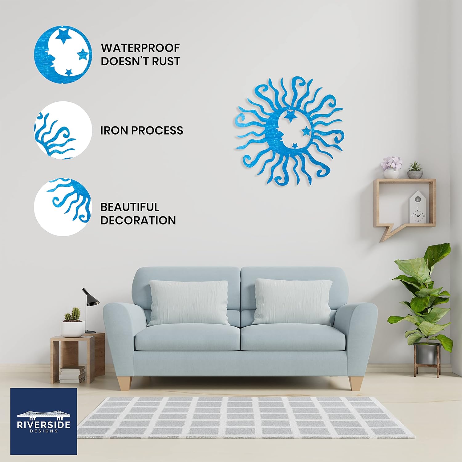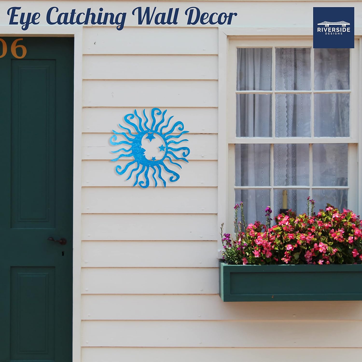 Riverside Designs Wacky Solar Moon Metal Wall Art Steel Outdoor Decor | Heavy-Duty and Waterproof | Made in USA (Teal, 18L x 18W)