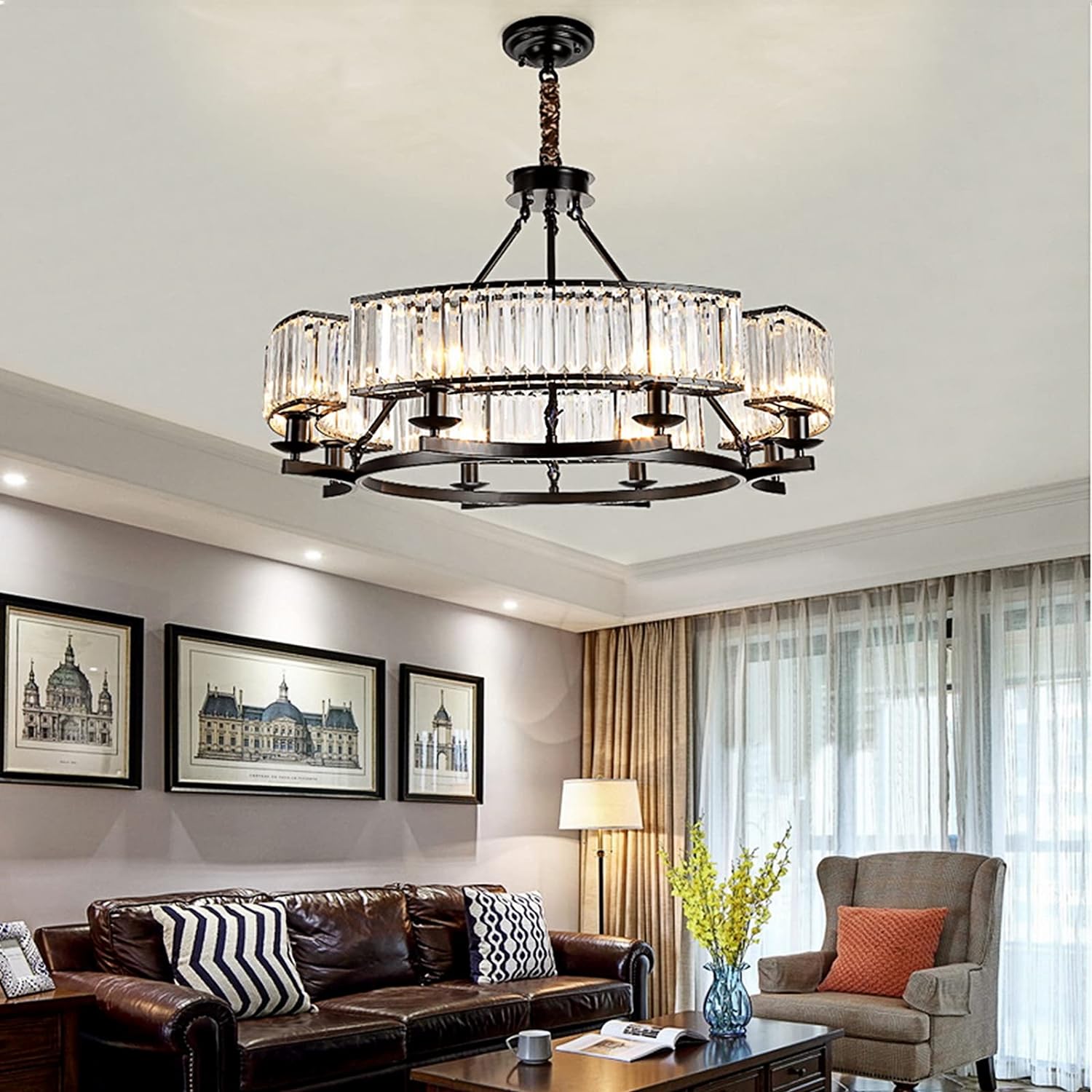 - Retro and Luxury Design: The combination of black metals and raindrop K9 clear crystal creating a rustic yet luxurious retro atmosphere. The lamp frame of this round chandelier is oil rubbed, which is anti-corrosive and rust-proof, durable, and easy to clean. Ideal for dining room, living room, high ceiling foyer, stairway, hallway.