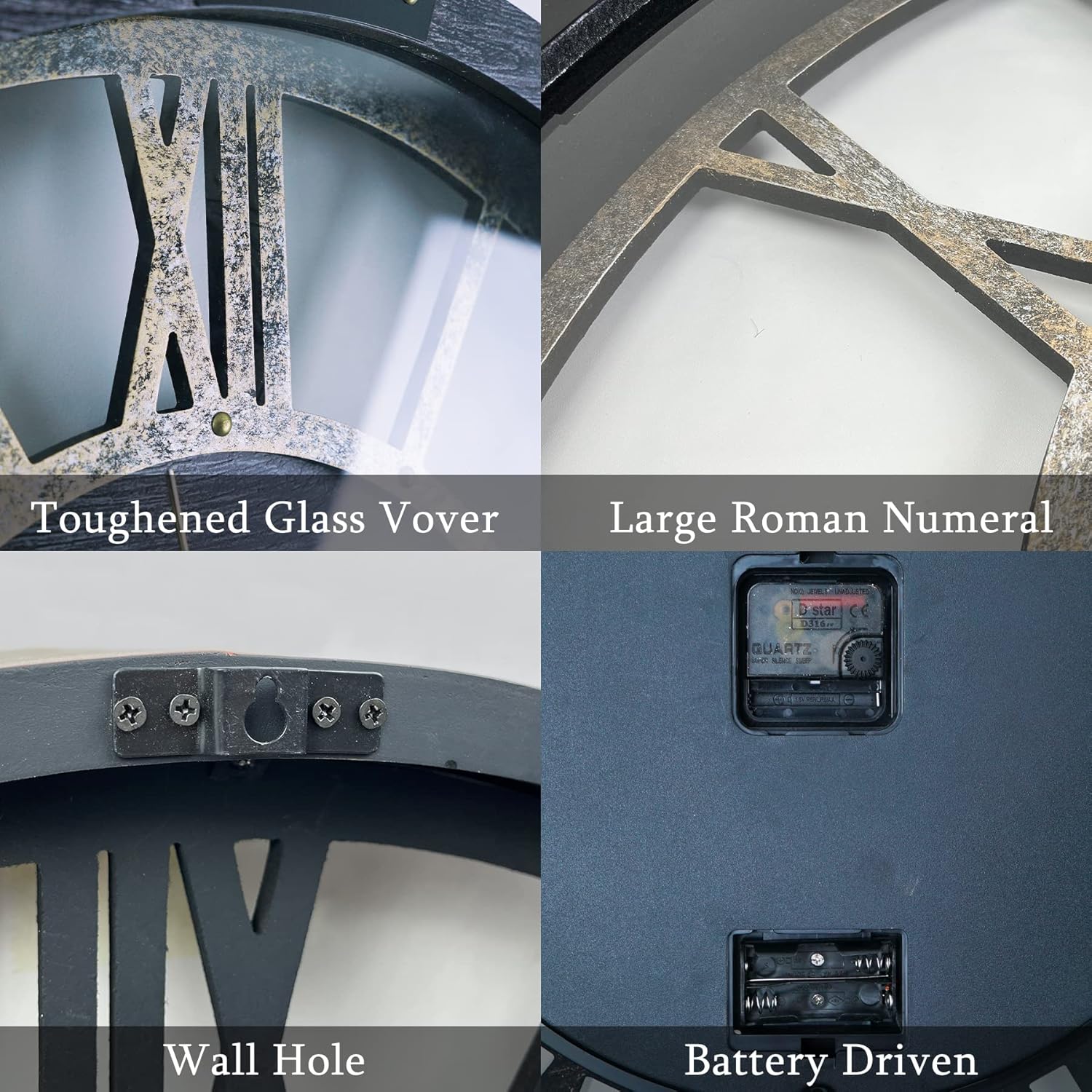 - 🙪Easy to Use: Clock living room decor is simple to operate, with independent pointers and gears powered by easily replaceable AA batteries. We recommend using carbon batteries for optimal performance.