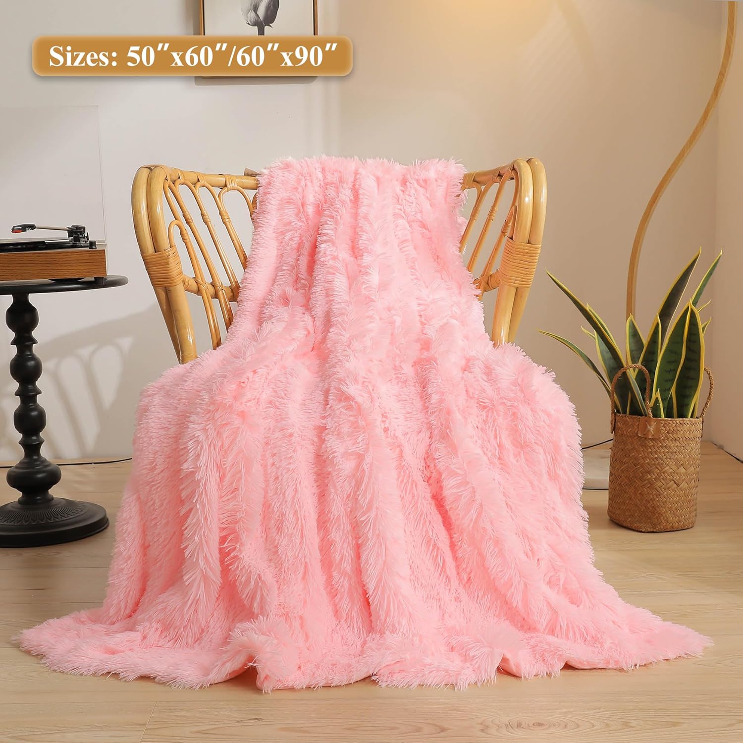 XeGe Fluffy Faux Fur Throw, Pink Luxurious 50x60 Shaggy Blanket, Warm Soft Fuzzy Couch Throw for Girls, Furry Lap Blanket for Sofa Bed Office Lightweight, Pink
