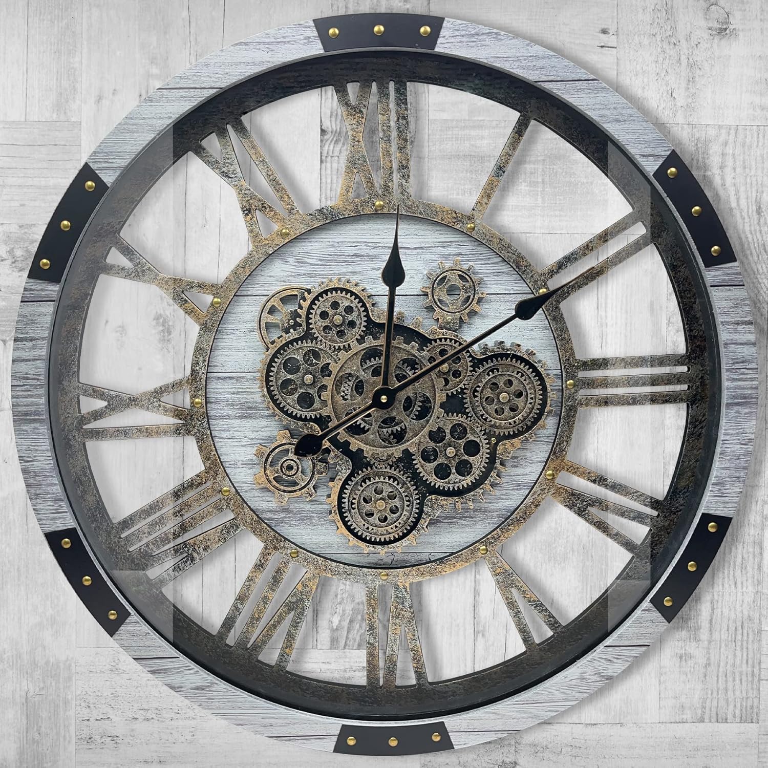 - Real Moving Gears Wall Clock: The rustic wall clock is design with multi-real moving gears, put battery in, various gears start working, makes a subtle relaxing sound and makes a living element in the environment in where it is placed, vintage and magical, catch all eyes of visits