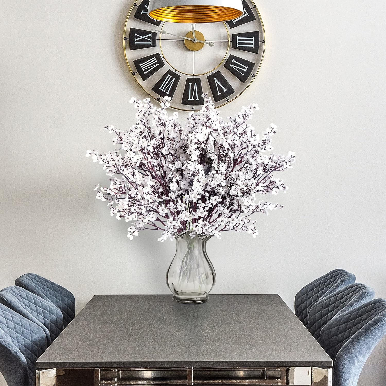 Sggvecsy 15 Pcs Babys Breath Artificial Flowers Gypsophila Bouquets Bulk Real Touch Fake Silk Flowers for Home Wedding DIY Floral Arrangement Kitchen Table Centerpiece Festival Decoration (White)