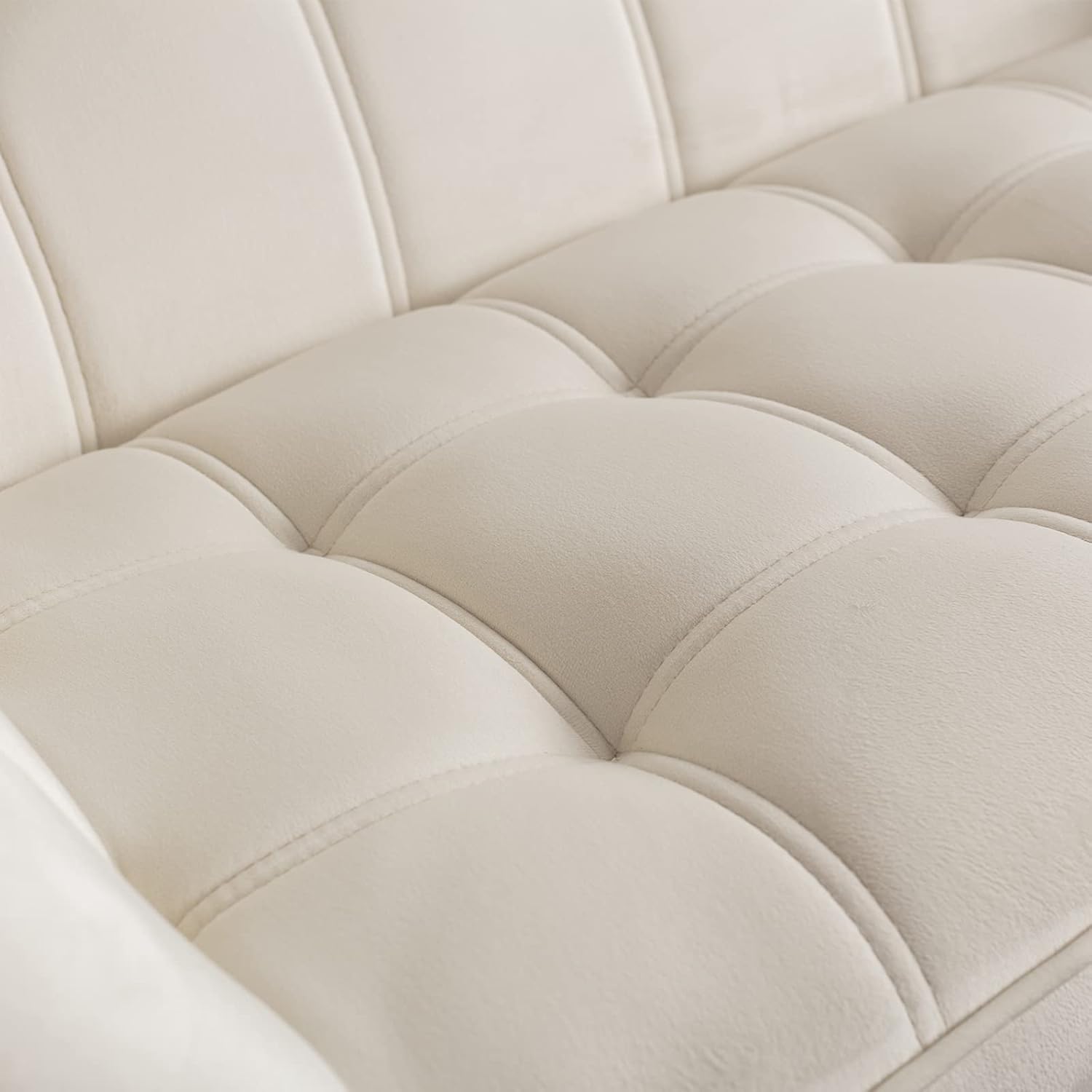 - 【Cozy Loveseat Sofa】Mini sofa is made of modern sherpa fabirc with a hardwood frame as the basic structure. Fabric is comfortable, not pilling and fading. Stylish flared armrest, soft quilting back design would be a leisure style in your home office.