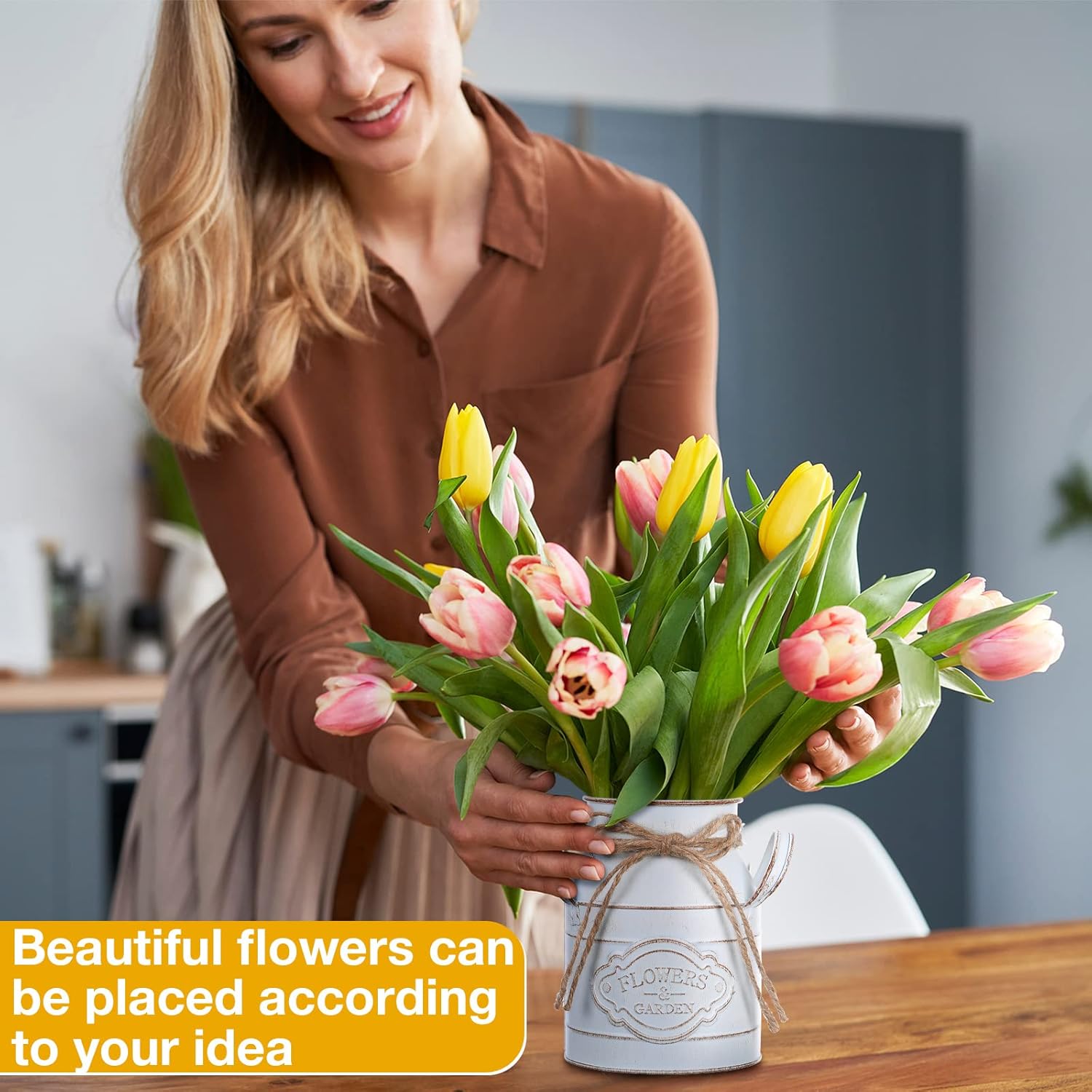 - Sturdy and Safe Material: metal rustic white vases for flowers are made of quality galvanized iron, which is safe and reliable, strong and sturdy, with a water resistant coating to prevent rust, not easy to break or deform, can be applied for a long time
