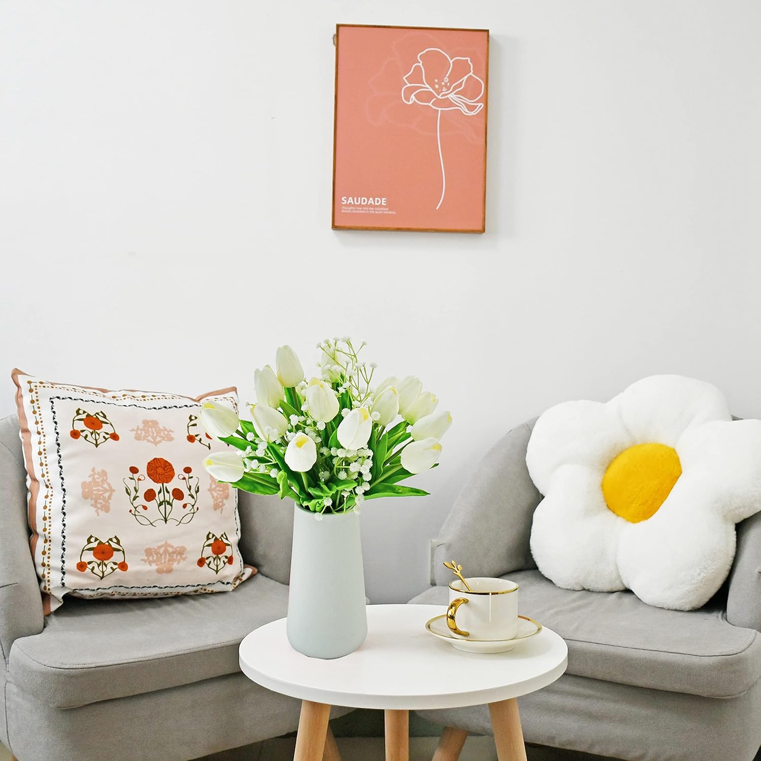 - All-Season Beauty with Gentle Color Care.These tulips bring timeless charm to Easter, Motherâs Day, weddings, or year-round dĂ©cor. To preserve the soft tones of light-colored flowersâespecially whiteâwe recommend avoiding direct sunlight for long-term (6+ months) display, as PU petals may naturally yellow over time.