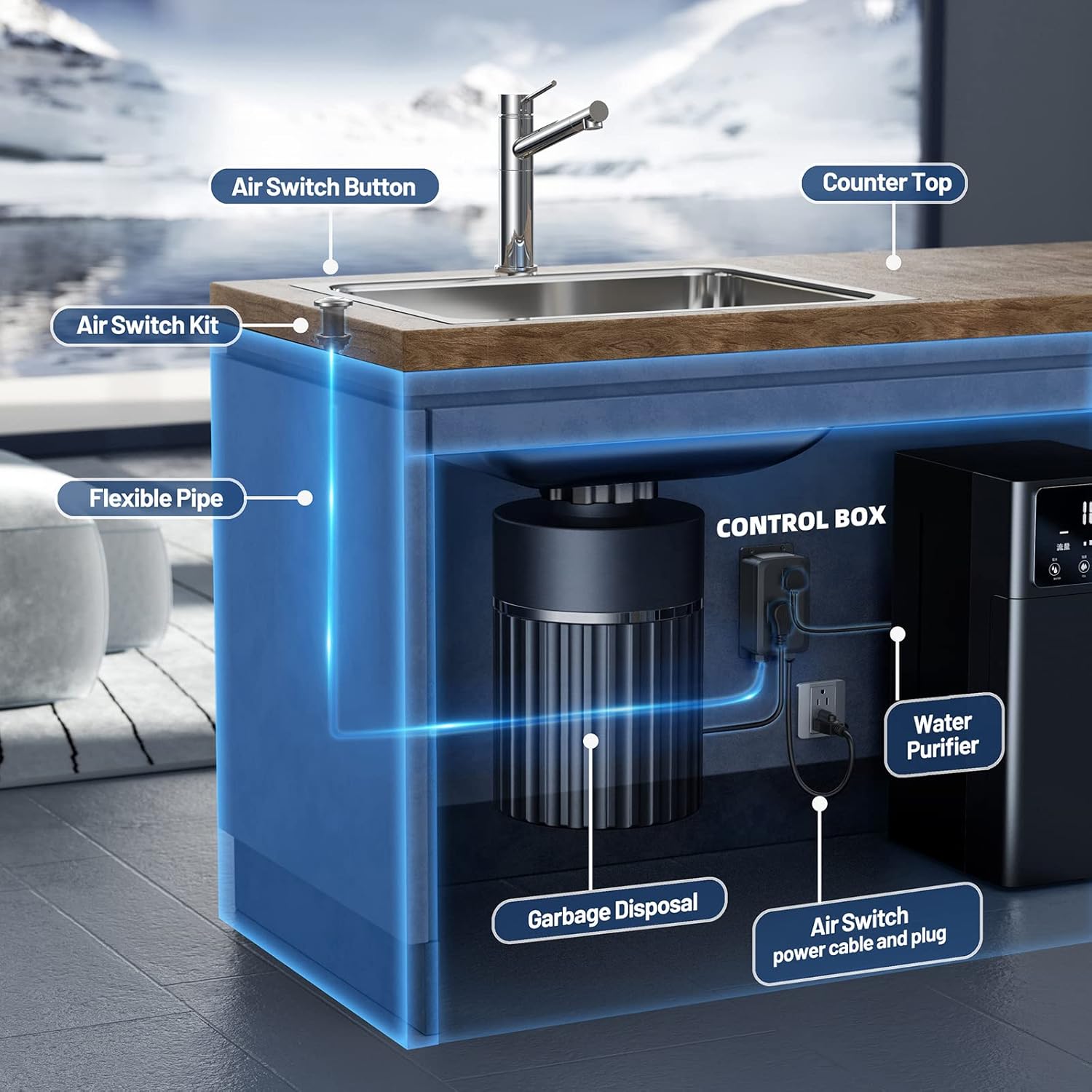 - 【Universal Compatibility – Works with Top Brands】Compatible with all major garbage disposals up to 2.5HP, including ISE, Waste King, Moen, GE, and more. Supports a wide range of countertop materials like granite, marble, quartz, and stainless steel.