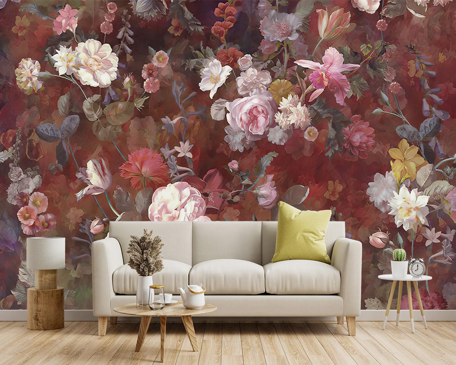 -Vintage Roses Floral Fabric Wallpaper Living Room Bedroom Bathroom Flowers Wall Mural- 91"x65"( not Peel and Stick)