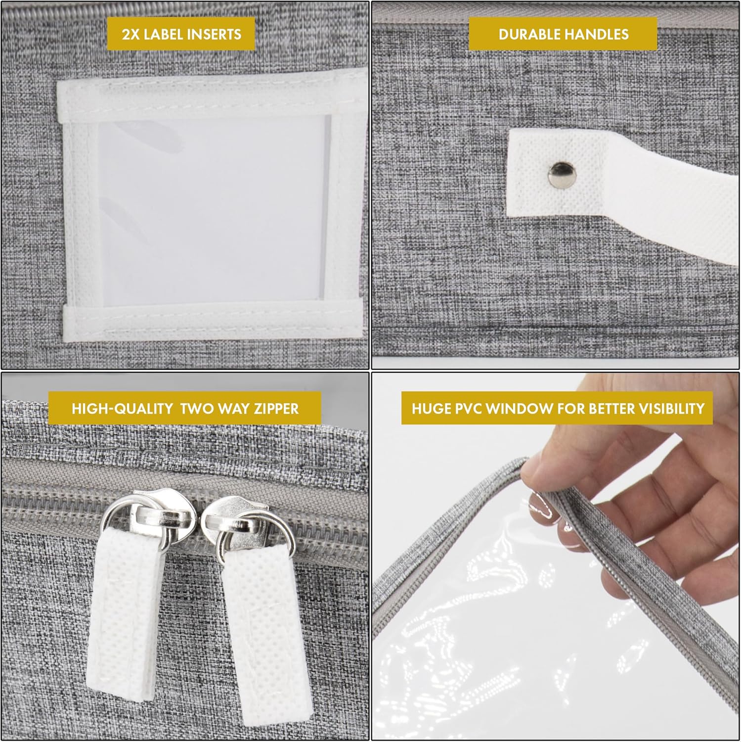 - ๐๐จ๐ฎ๐๐ฅ๐ ๐๐๐๐ฎ๐ซ๐ ๐๐๐ง๐๐ฅ๐๐ฌ ๐๐ข๐ญ๐ก ๐๐๐๐ฏ๐ฒ ๐๐ฎ๐ญ๐ฒ ๐๐ข๐ฉ๐ฉ๐๐ซ ๐๐ฅ๐จ๐ฌ๐ฎ๐ซ๐: Our storage boxes with lids for organizing comes with 3 fortified handles for secure lifting & powerful zipper for durable sealing. The handles of these low profile underbed storage are precisely stitched inside out, with additional rivets to hold up to 35 lbs for heavy-duty use making it ideal to use as flat clothing storage. To enhance safety, our under bed flat storage boxes are expertly tailored to keep your clothes protected.