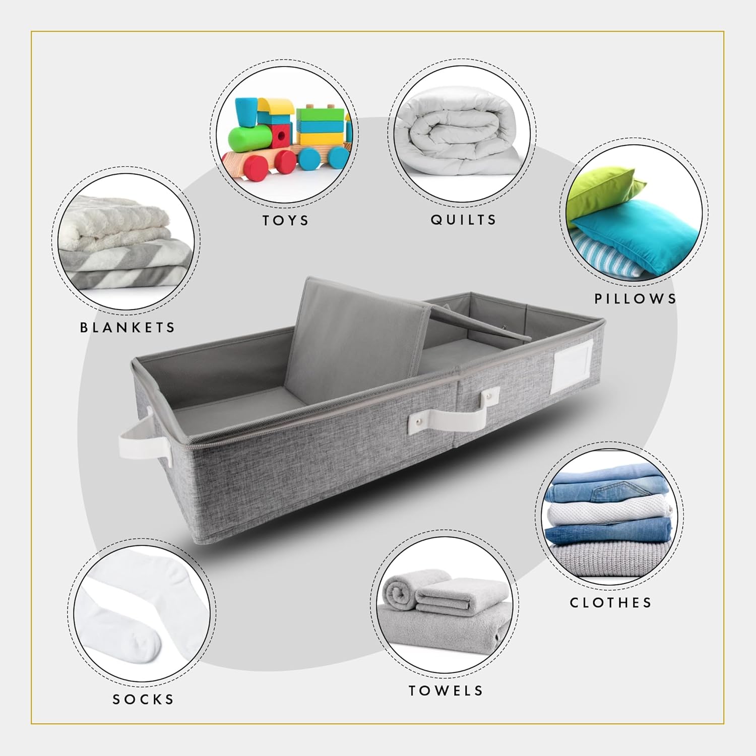 - ๐๐๐๐ ๐๐๐ญ๐ข๐จ๐ง๐ข๐ ๐๐ฅ๐จ๐ญ๐ก ๐๐๐ญ๐๐ซ๐ข๐๐ฅ: Made from premium quality fabric, our 23.5x12.5x5" Under Bed Storage Containers With Lids are durable, sturdy, & carefully designed to hold large quantities of clothes, blankets, shoes, & various bed accessories. These under bed storage dorm drawers are designed to fit perfectly under your bed for efficient bed room organization and storage, making it an under bed organizer that will easily blend into your home's aesthetic style.