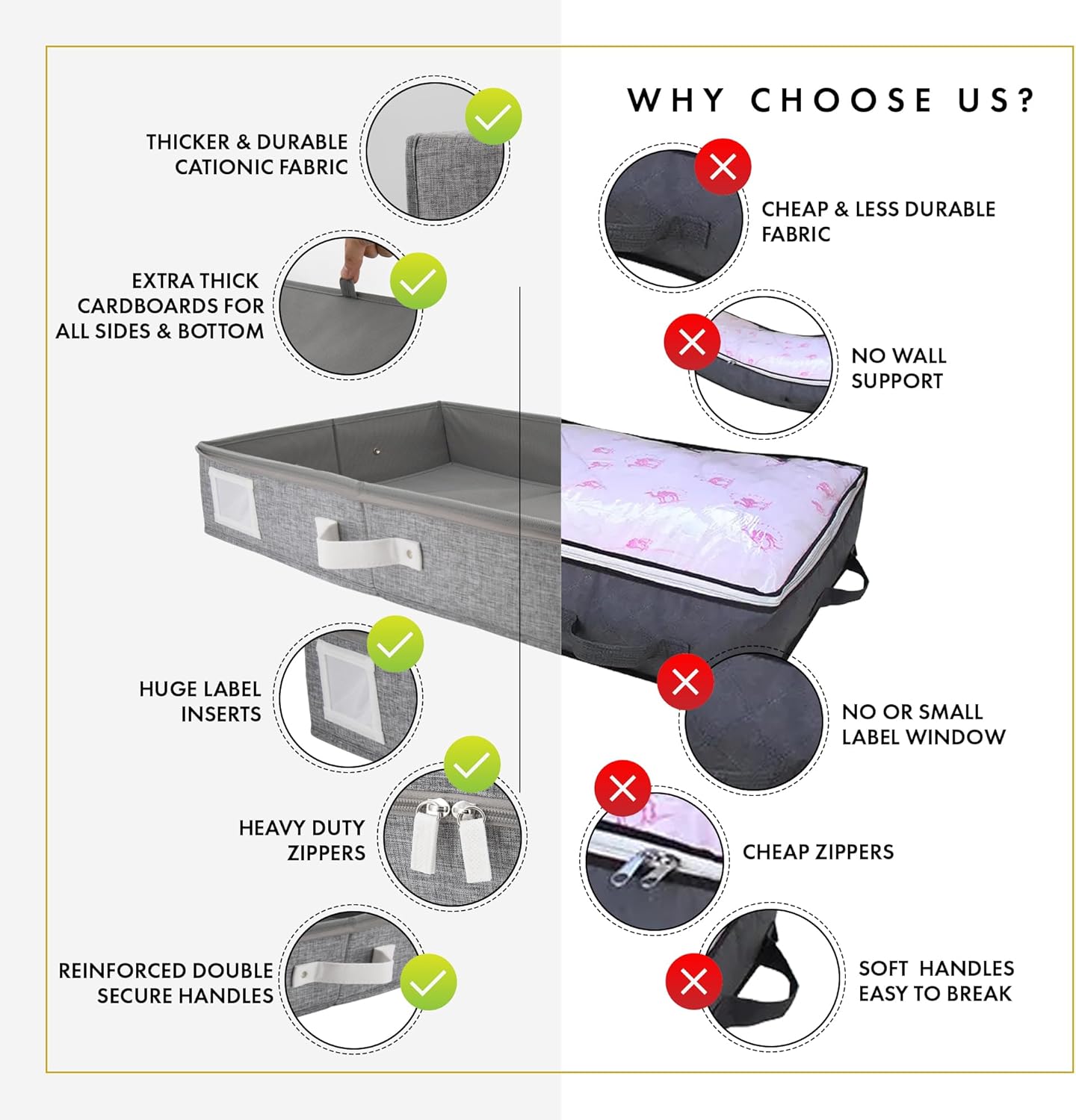 - ๐๐ฑ๐ญ๐ซ๐ ๐๐ก๐ข๐๐ค ๐๐ญ๐ฎ๐ซ๐๐ฒ ๐๐๐ซ๐๐๐จ๐๐ซ๐๐ฌ: Unlike most under bed storage box, Homelux Theory's under the bed storage containers come with extra thick cardboard on each side and bottom part to help hold their shapes and withstand frequent use & heavy loads. While other under box for clothes and shoe organizer under bed storage in the market usually has flimsy sides made of thin, lightweight materials, our timeless storage boxes for under bed are crafted for long-term durability and reliable performance.