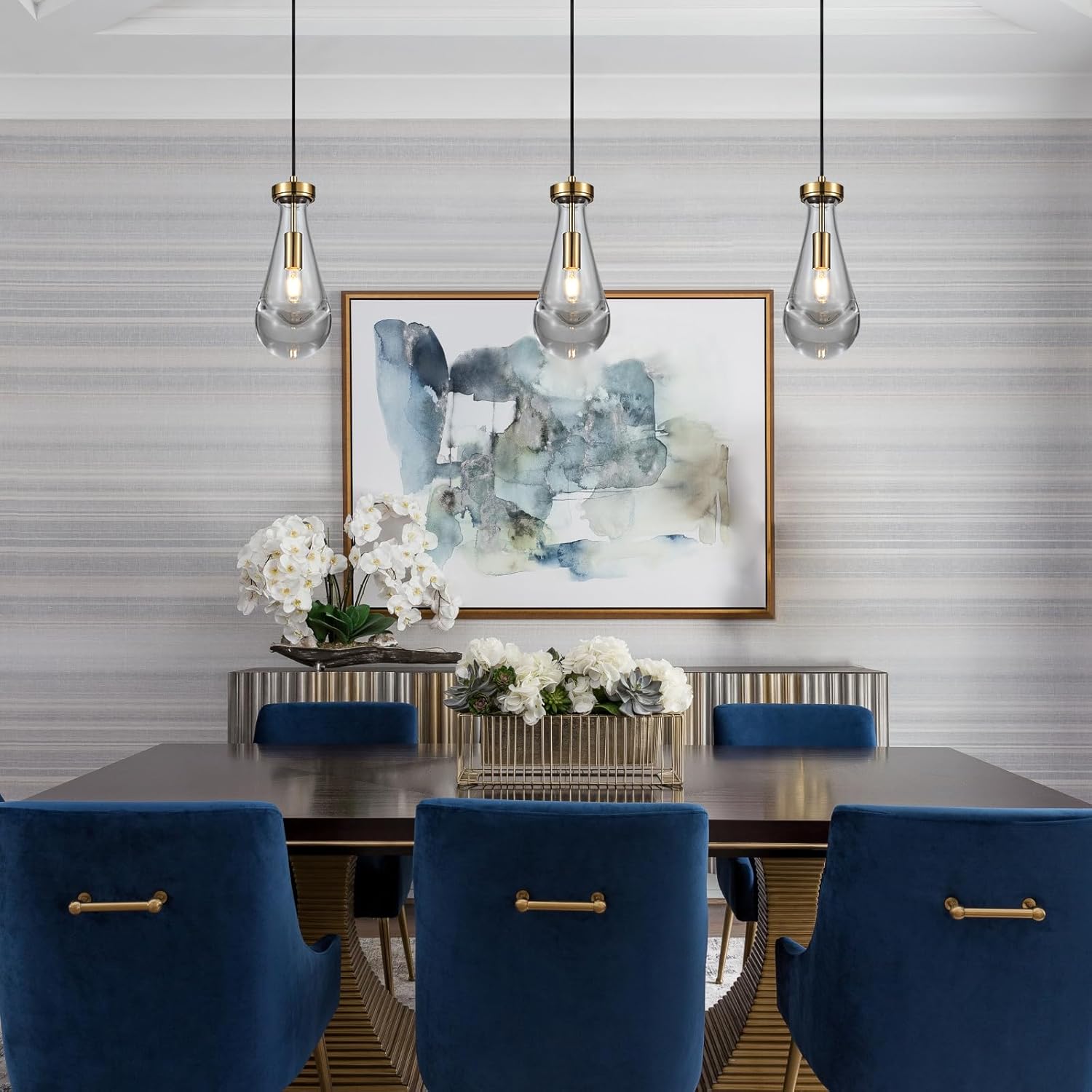 - 【Raindrop Design】This raindrop pendant light features a unique and captivating design that combines modernity with the beauty of nature. The handmade, mouth-blown glass shade resembles raindrops, creating a stunning light effect that enhances any space. Whether you prefer a modern or vintage farmhouse style, these pendant lights effortlessly blend in while illuminating your room with a bright and decorative ambiance.