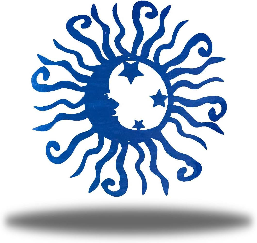 Riverside Designs Wacky Solar Moon Metal Wall Art Steel Outdoor Decor | Heavy-Duty and Waterproof | Made in USA (Blue, 12L x 12W)