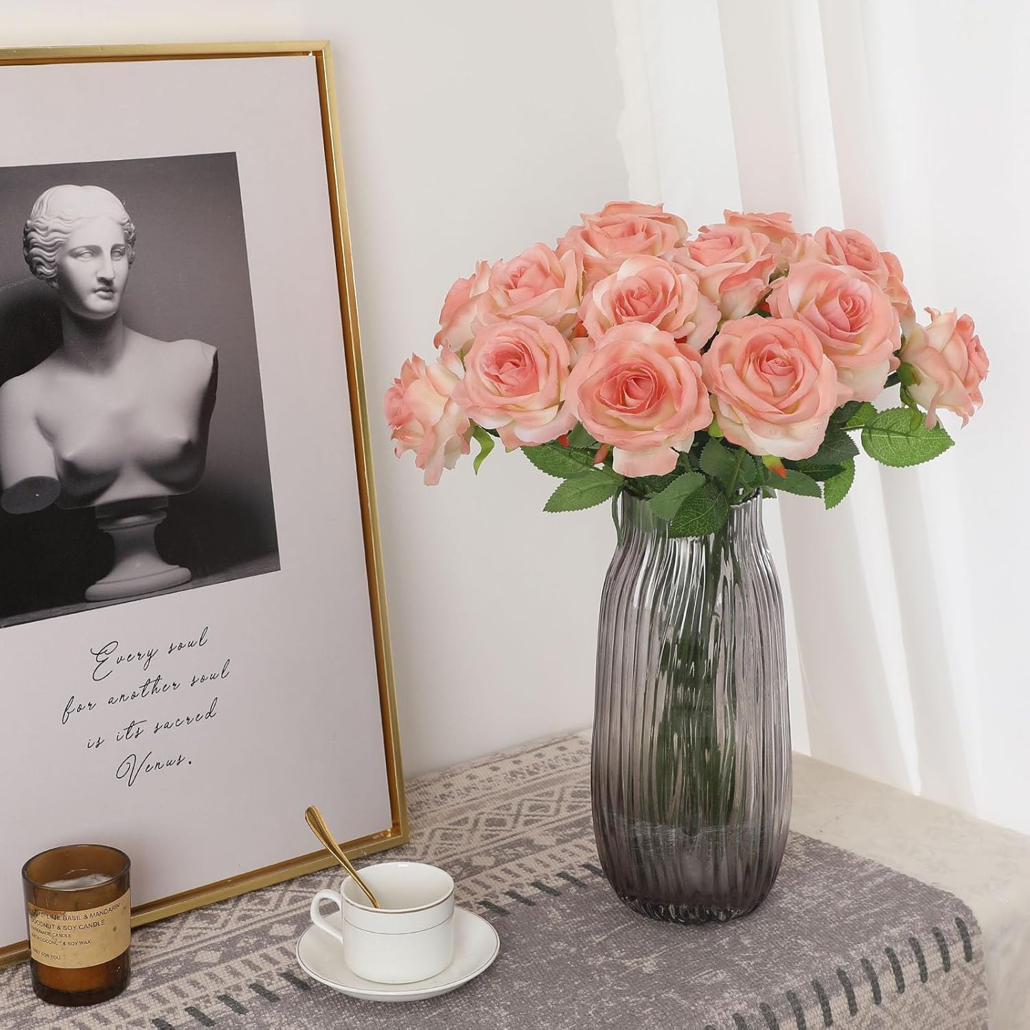 - Premium Quality Fake Roses: Rose flower head made of silk.Metal wire as skeleton,wrapped by plastic,can be cut or bent.Single stem pink silk roses have silky( real touch ) flowers and (high realistic) leaves.It's classic design and Multiple color choices can meet your demands in all seasons