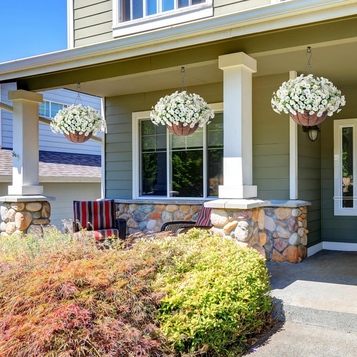 - Durable and UV Weather-Resistant: The looking real fake hanging plants are made of high quality silk cloth and plastic, which are designed to withstand outdoor elements, and UV and all weather resistant, so they won't fade or deteriorate in the sunshine.