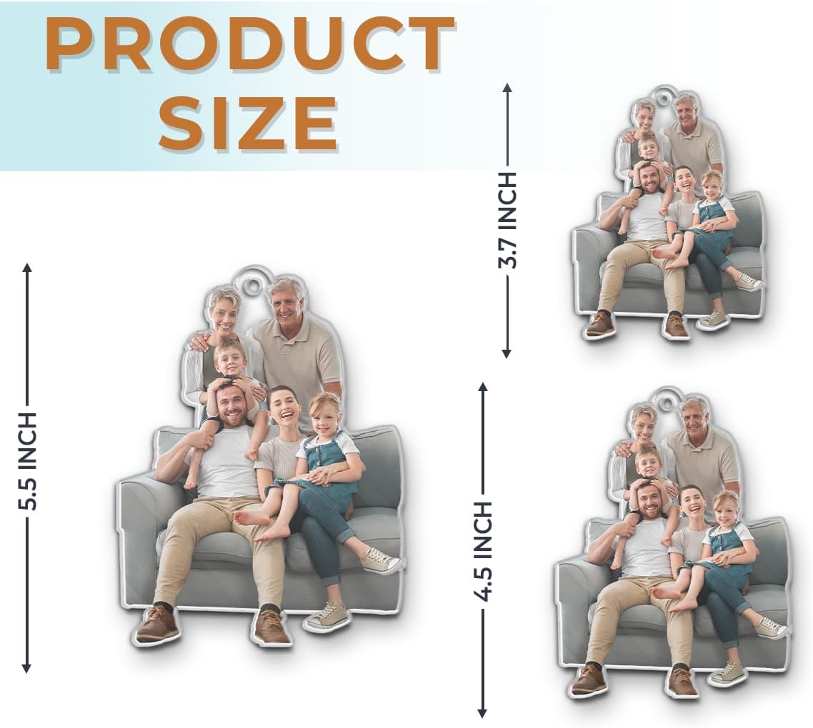 - π Custom Ornaments With Pictures: Crafted with high-quality acrylic, this ornament features a height of 3.7 inches (~9.5 cm) and a slim 0.12" thickness, ensuring its durability and lightweight design. The ornament can be customized with your photo, which makes it a truly personal and cherished gift. We include a hanging gold cord loop to easily hang on your Christmas tree or an ornament stand.