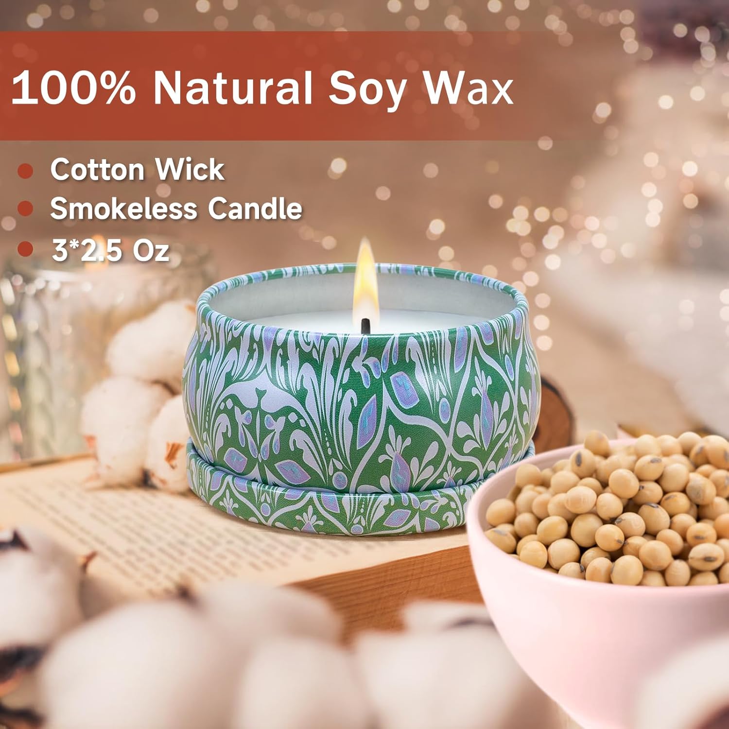 3 Pack Scented Candles Gifts for Women, 2.5 oz Aromatherapy Candles for Home Scented, Natural Soy Candles with Floral Scents, Portable Small Jar Candles Set Gifts for Birthday, Mother's Day