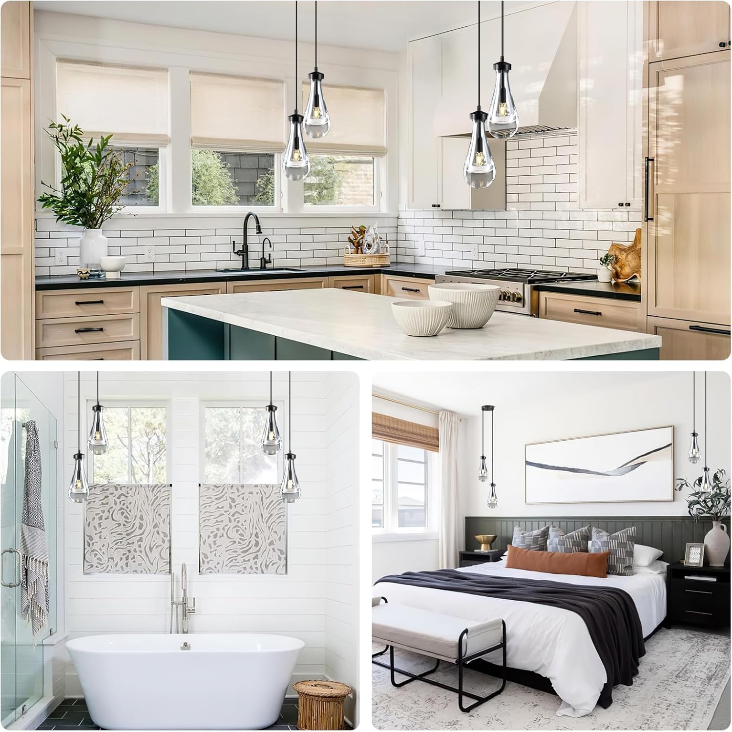 - 【Provide 2-Year Service】Black 2-light raindrop pendant lights are ideal for kitchen island, bathroom, bedroom, foyer, and above the sink.