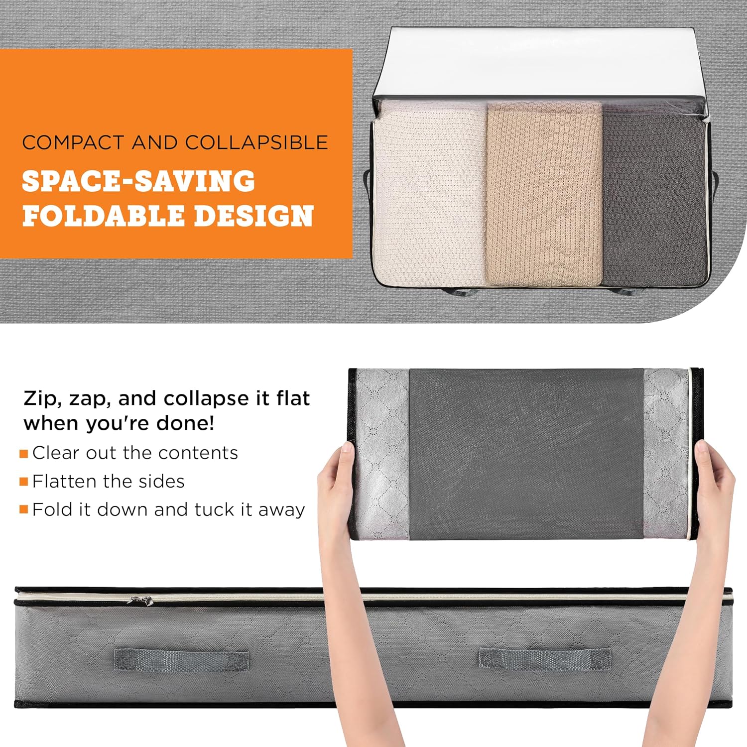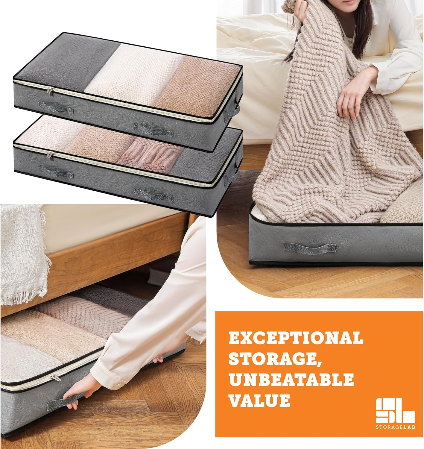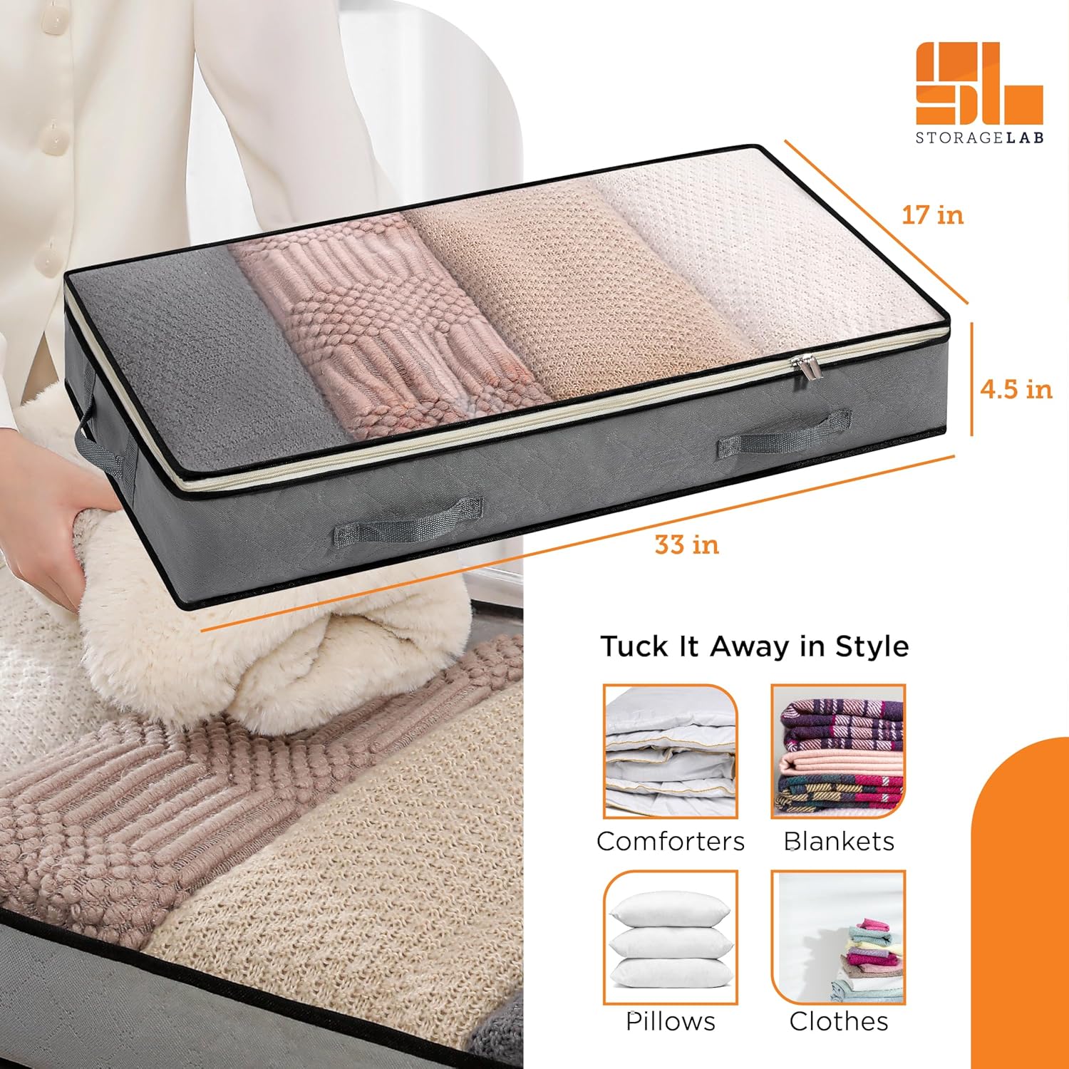 storageLAB Under Bed Storage Containers - Foldable Closet Organizer with Clear Top, Sturdy Handles - 7L Capacity Storage Box for Clothing, Comforter, Blanket, and Shoe - 2 Pack, Soft-Sided, Gray