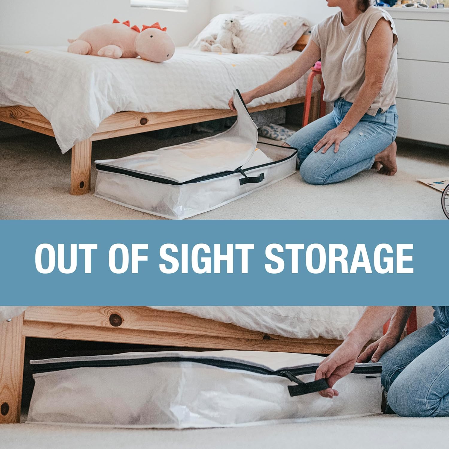 - AMPLE CAPACITY: The CleverMade Storage Slide offers a generous 46-liter capacity, measuring 33" L x 17" W x 5" H when open. Ideal for maximizing under-bed storage space, and the transparent material makes it easy to recognize what's stored within!