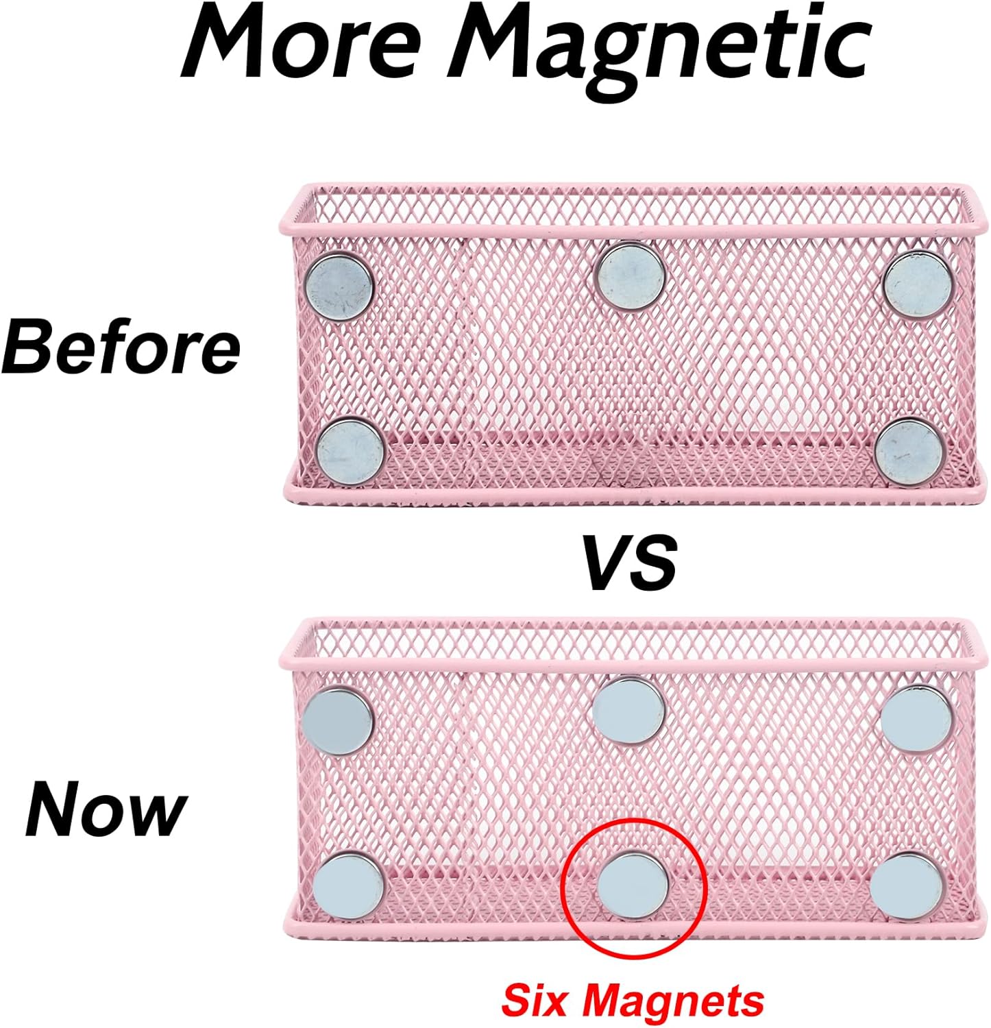 EASEPRES Magnetic Pencil Holder Set of 6 - Wire Mesh Storage Baskets Organizer with Strong Magnets - Perfect for Whiteboard, Refrigerator and Locker Accessories, Pink