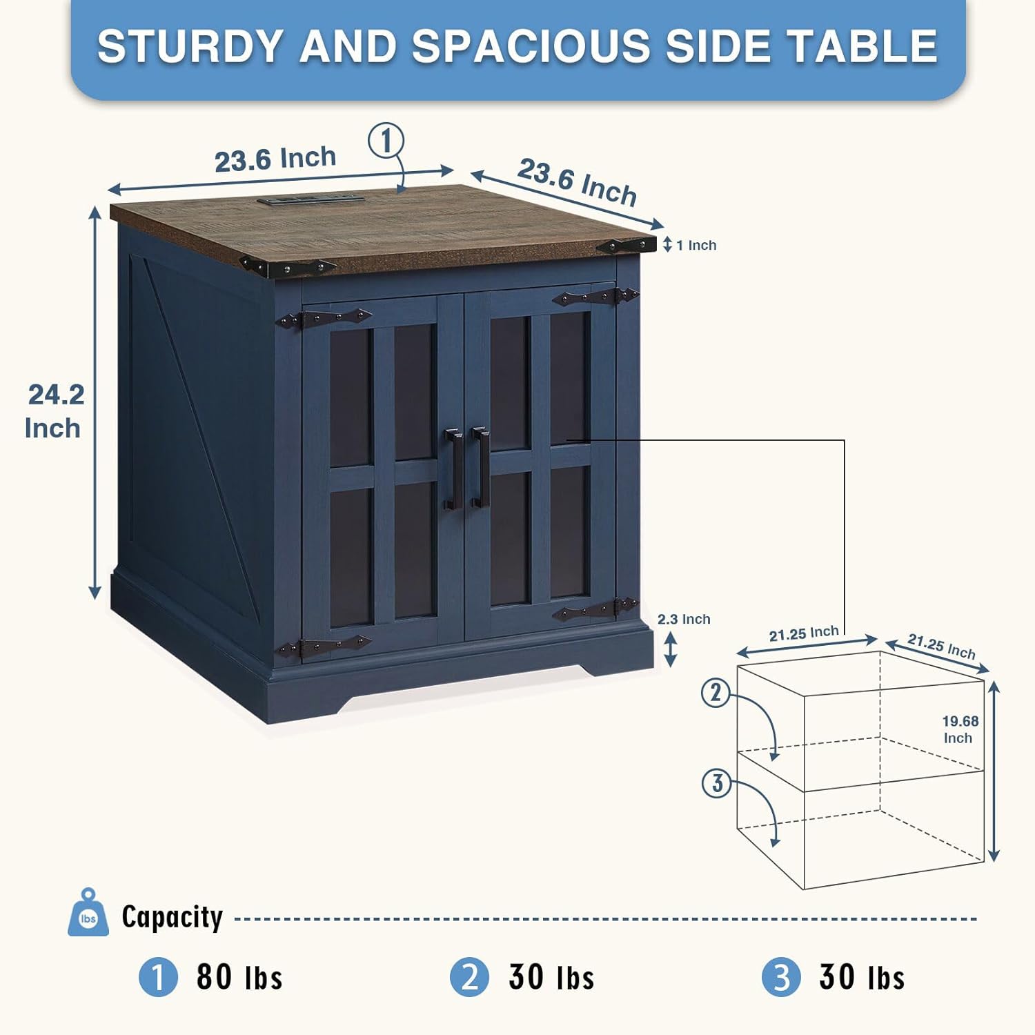 - Large Tabletop with Charging Station : The charging station with 2 power outlets and 2 USB ports allows you to charge up to 4 devices simultaneously, keeping your electronics within reach. Product Measured: 24" W x 24" D x 24"H.