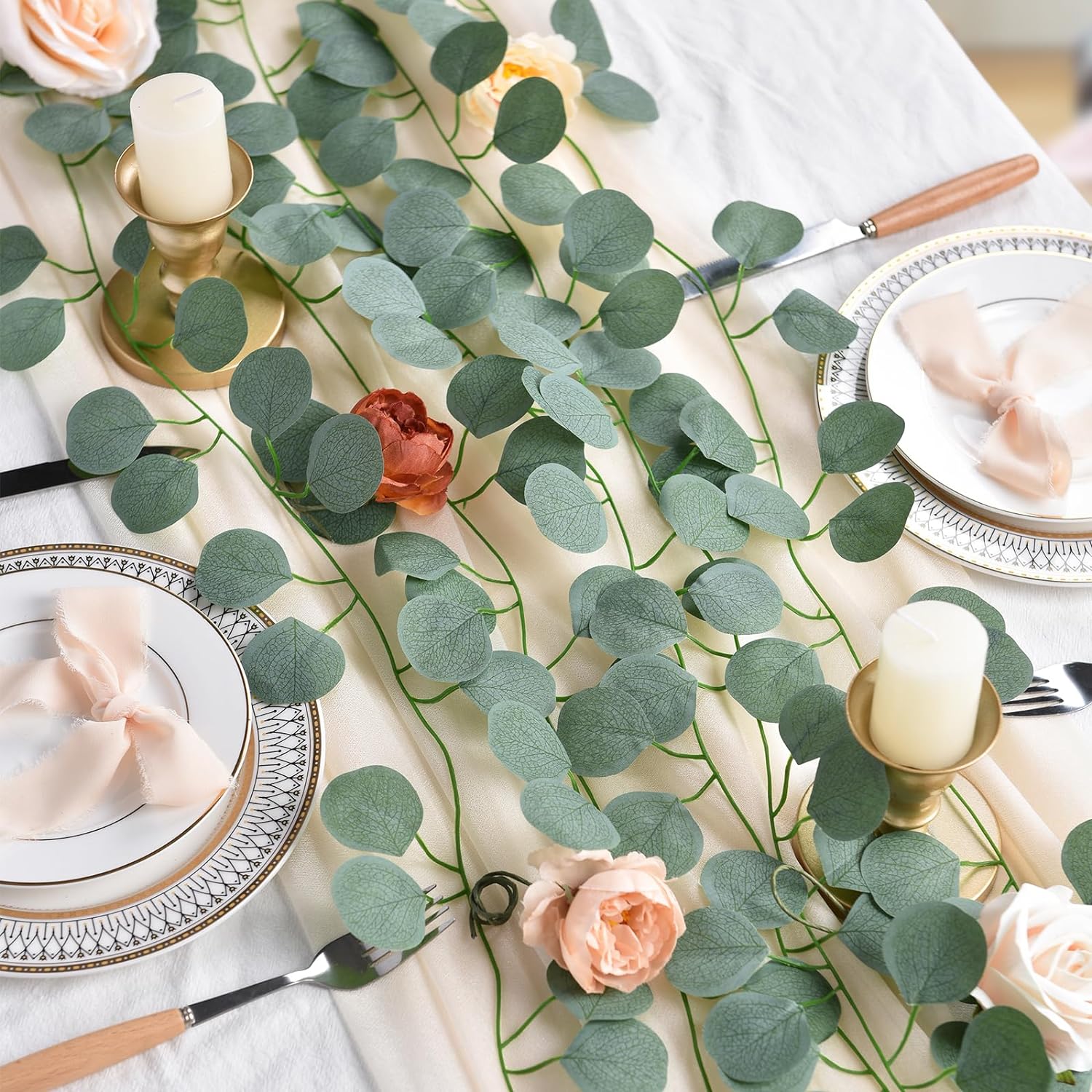 DearHouse 86 Feet 12 Strands Artificial Eucalyptus Leaf Plants Vine Hanging Eucalyptus Garland for Home Kitchen Office Wedding Wall Decor