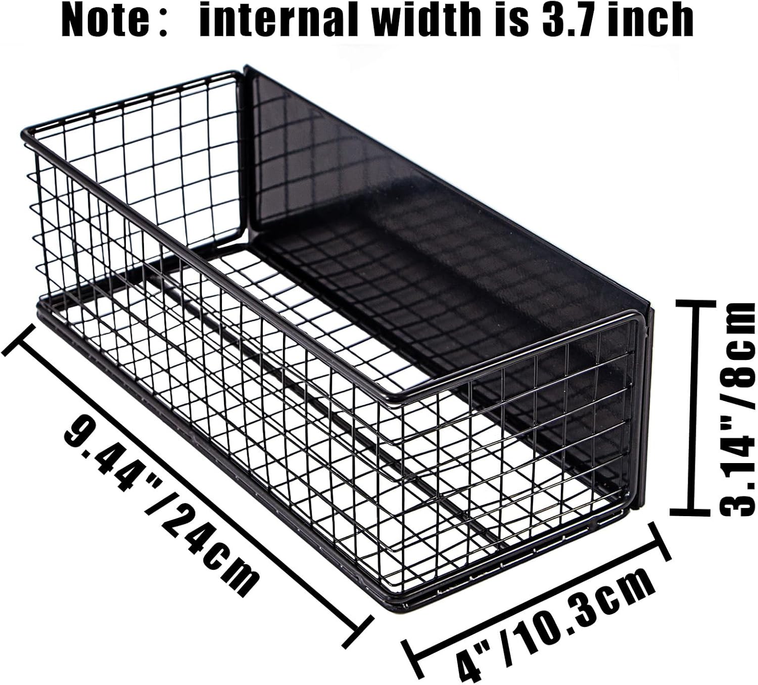 Magnetic Basket, Magnetic Shelf for Fridge, Magnetic Spice Rack Wire Mesh Magnetic organizer Holder Accessories for Office Kitchen Classroom Storage, Black-High, 9.44" x 4" x 3.14"