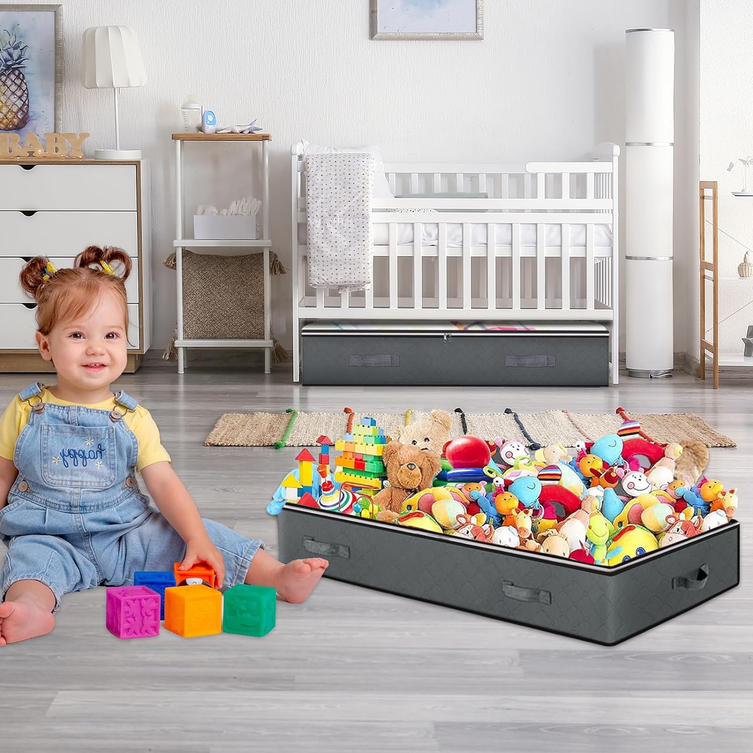 - 【Reinforced Handles】The wide handles of the underbed storage containers are double-stitched with thick fabric, sturdy enough to pulling out from underbed and moving in your house, reliable for long time use.