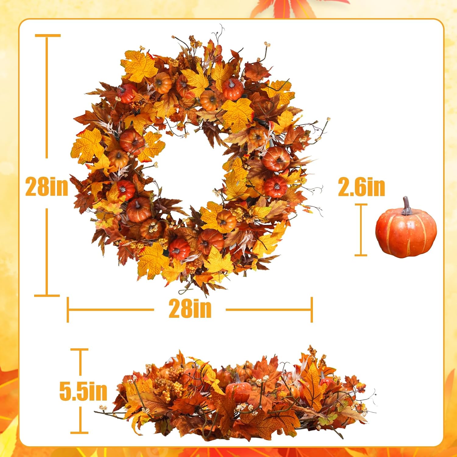 - Easy Installation: Includes two iron rings and some zip ties. Simply connect the two iron rings, wrap the fall garland around it, and secure them with the zip ties to form a circle. This quick and hassle-free setup requires no additional tools.