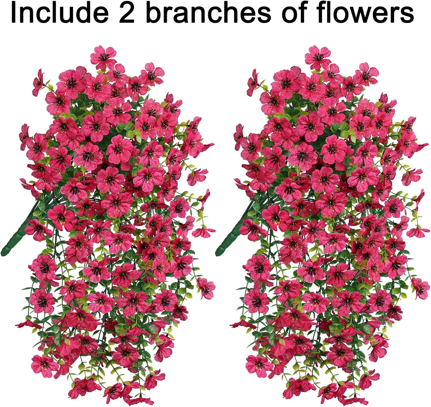 - Durable and UV Weather-Resistant: The fake hanging plants flowers are made of high quality silk cloth and plastic, UV and all weather resistant, waterproof and no fade in the sun and rainstorm.