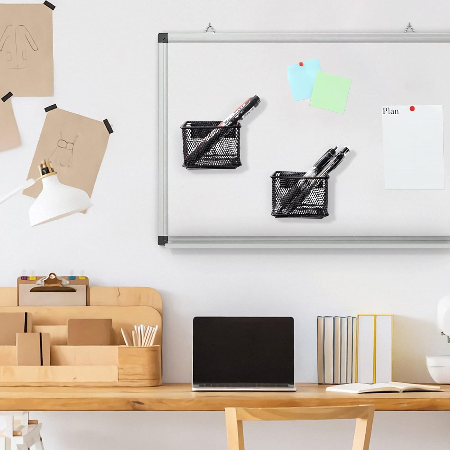 Black Basket Set of 4, Magnetic Pen Holder for Refrigerator, Heavy Duty Baskets, Holder for Locker Whiteboard Office, 3.42'' 2.36'' 2.55''