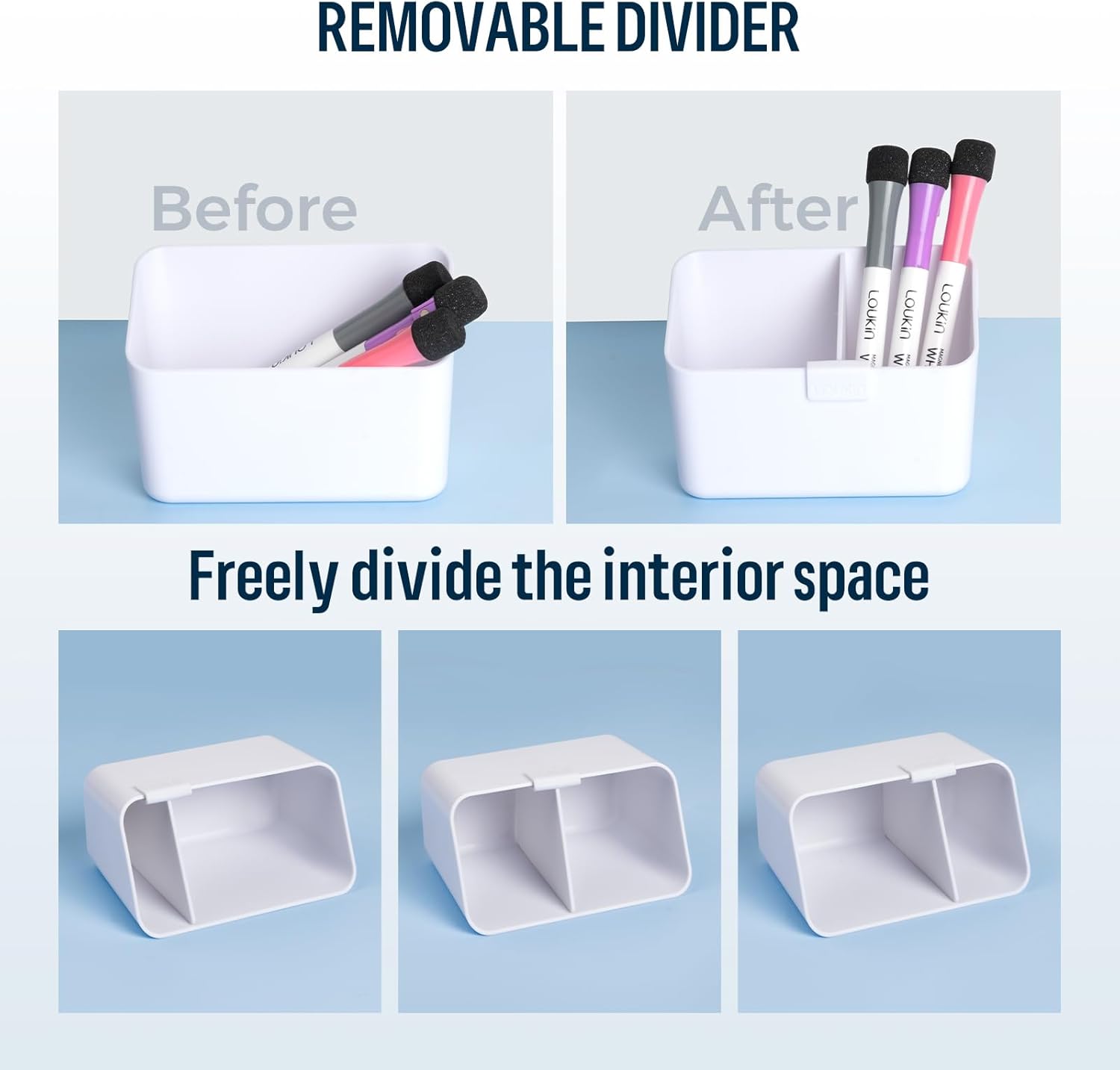 - Freely Organized Space: Features a movable divider to customize the internal space. Includes 2 dry-erase accessory tray for storing and organizing items. Clever and space-saving