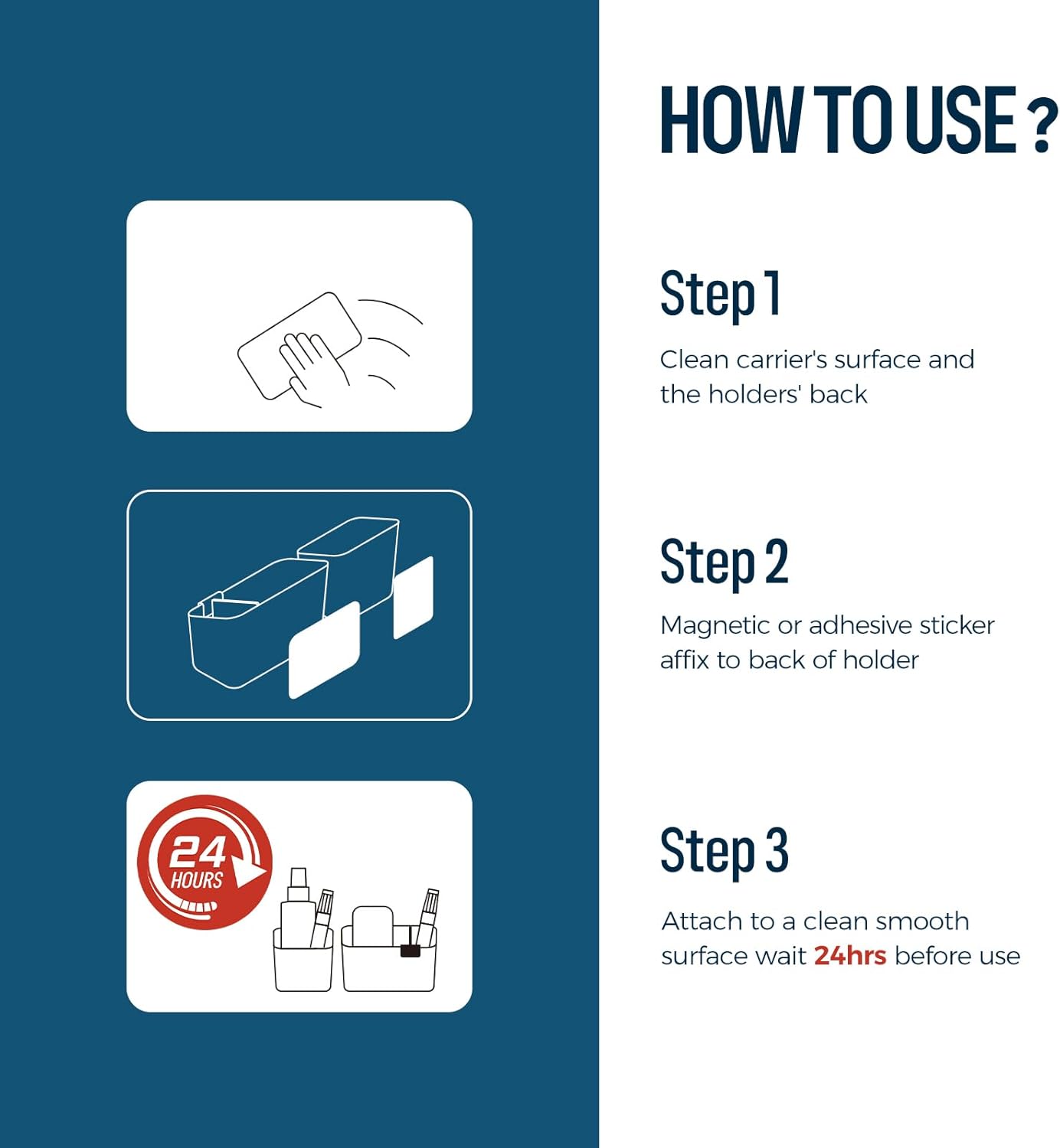 - Dual Affixing Design: Magnetic/adhesive stickers with a large adsorption area ensure the holder is firmly attached to the surface. Easily attaches to magnetic surfaces such as whiteboards and refrigerators with magnetic sticker and various non-magnetic surfaces with adhesive one, too