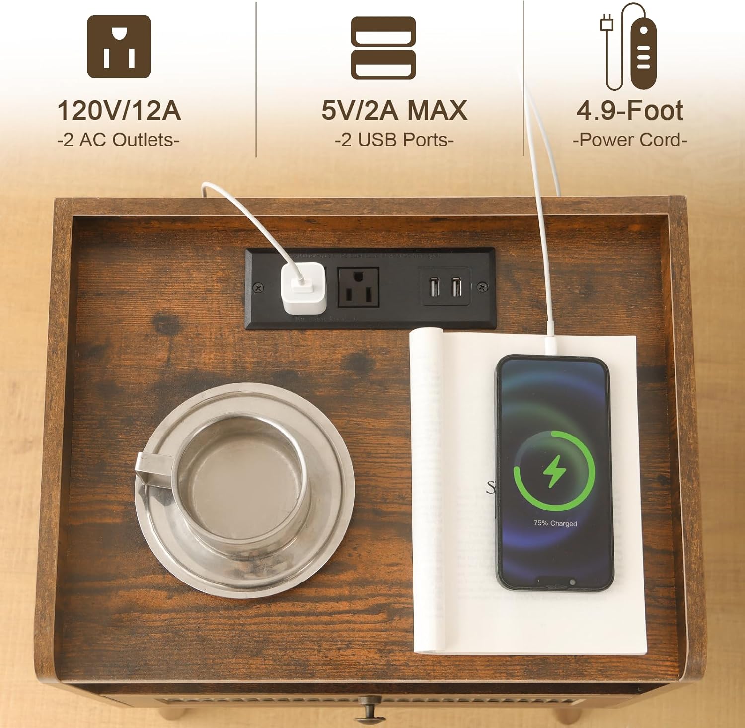 - Multifunctional Nightstand: This mid century night stand with the charging station is equipped with 2 USB Ports and 2ร3-Prong Power Outlets that can meet your needs to charge phones, iPads, laptops, and desk lamps easily. The 4.9-foot-long electrical cord makes phones, and ipads when charging that also is within your armโs reach