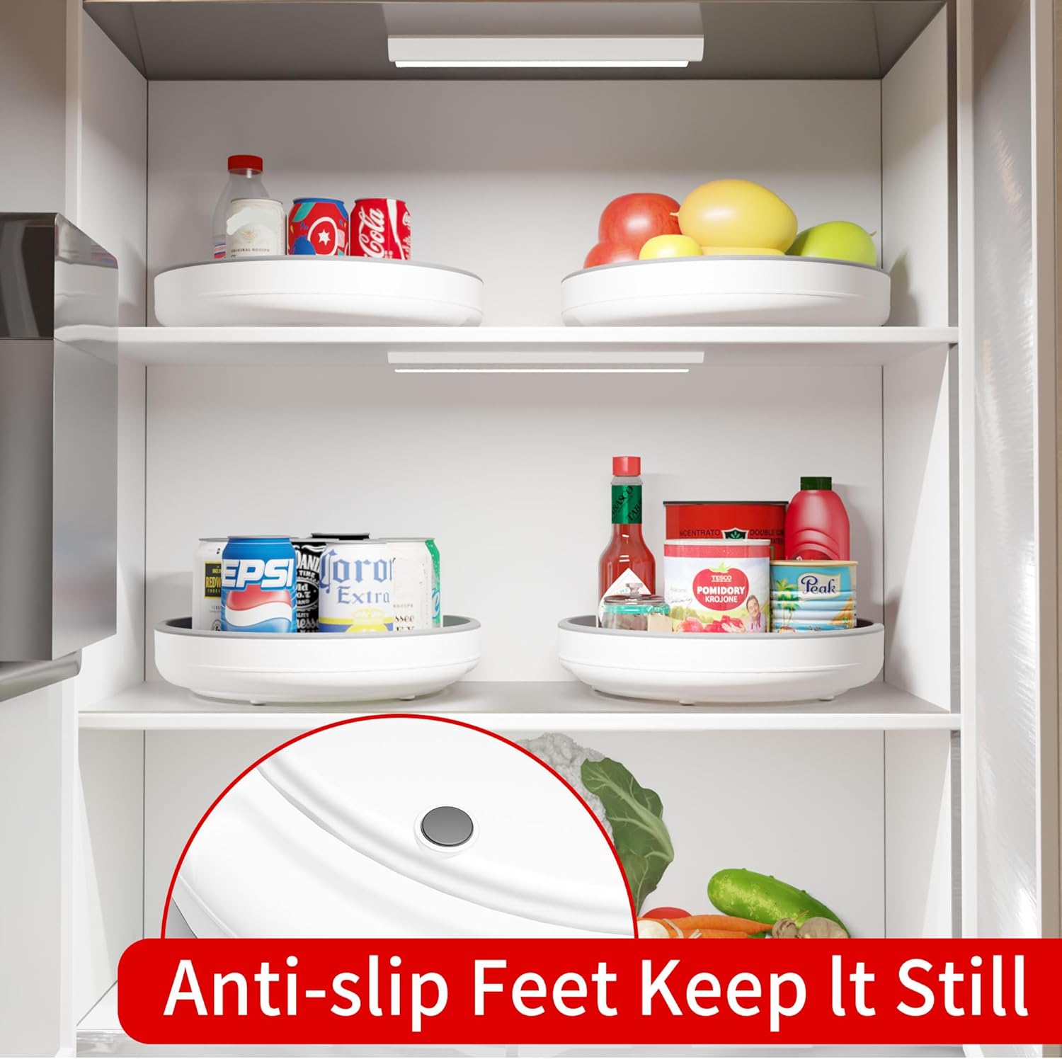 - Package Include: 1 Pack 10 Inch lazy susan organizer. Easily rotating plastic lazy susan turntable for pantry organizers and storage includes non-skid beaded surfaces with anti-slip base feet
