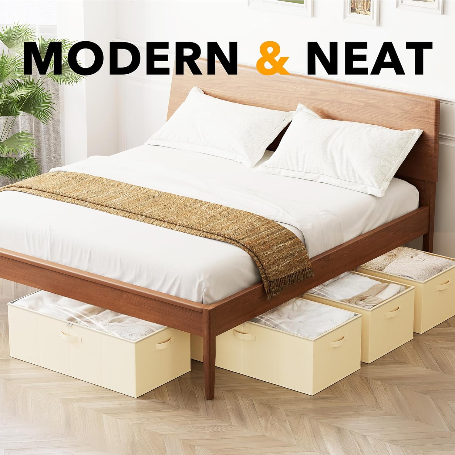- 4 PACK BEIGE UNDER BED STORAGE - Make your underbed space neat and organized with this storage bin organizer; Each Bin SIZE: 31.5"L x 15.8"W x 10"H