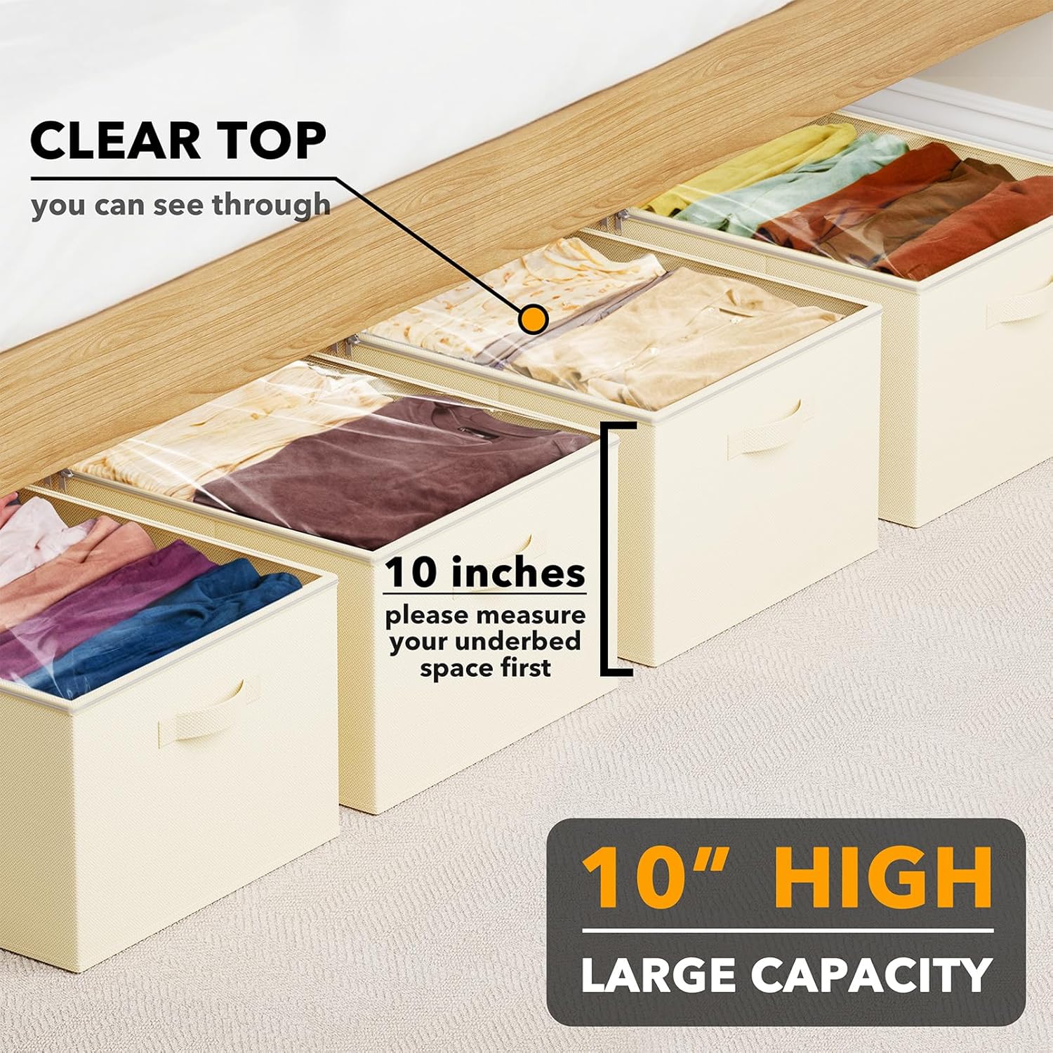 SpaceAid 4 Pack 10" High Under Bed Storage Containers, Large Underbed Storage Organizer Bins with Lids for Bedroom, Dorm, Clothes, Closet Organization, Bed Sheets and Blankets (Beige)