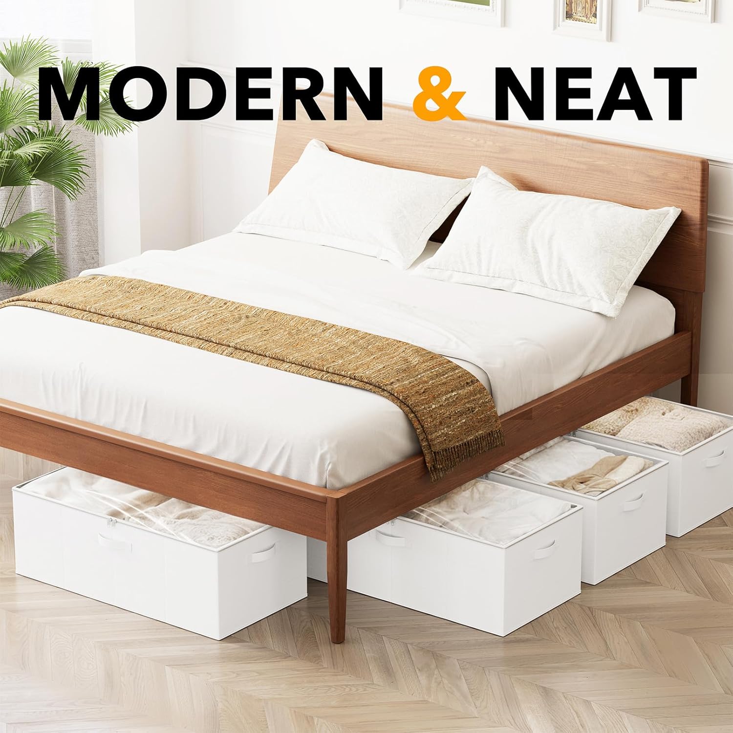 - 4 PACK WHITE UNDER BED STORAGE - Make your underbed space neat and organized with this storage bin organizer; Each Bin SIZE: 31.5"L x 15.8"W x 10"H