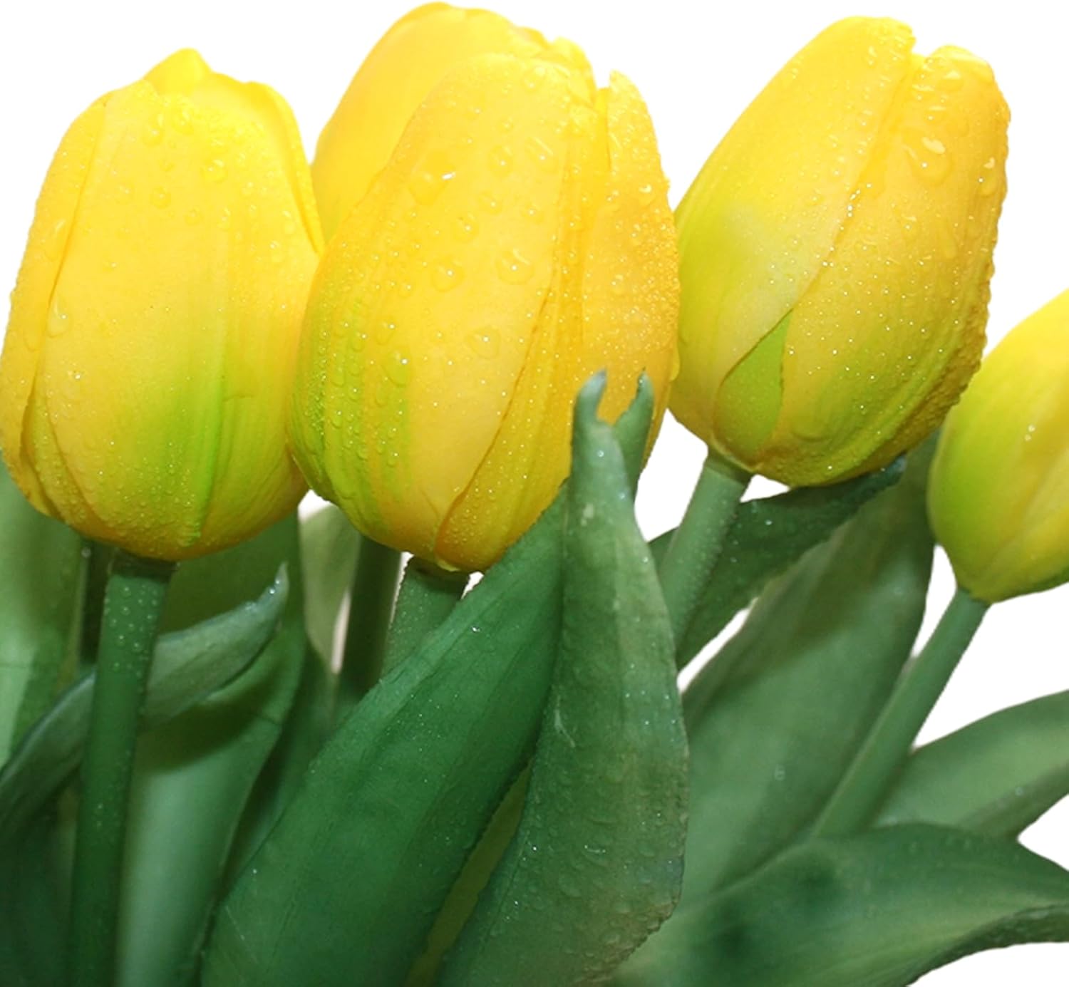 - [Real Touch]: Our latex tulips closely mimic the texture of real flowers, and the buds resemble the natural growth state of the plant. With bright, shiny colors, real touch flowers provide a unique sensory experience, uplifting your mood when placed in your home.