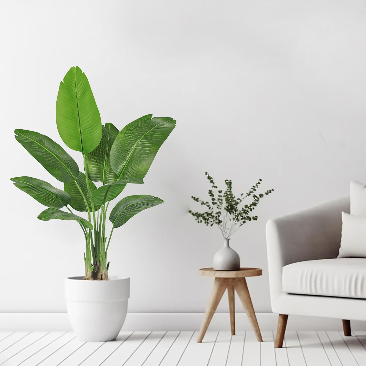 - Realistic Faux Tropical Plants: Do you want some green to light and refresh your home? This artificial tree will solve your problem! Elegant Artificial Bird of Paradise tree Adopting an integrated tree stem structure with textured root design and 3D printed realistic leaves, creating a natural plant shape that brings you closer to nature. Suitable for capturing the appearance and feeling of lovely tropical palm trees anywhere. Artificial tree is ecologically friendly and green all year round.