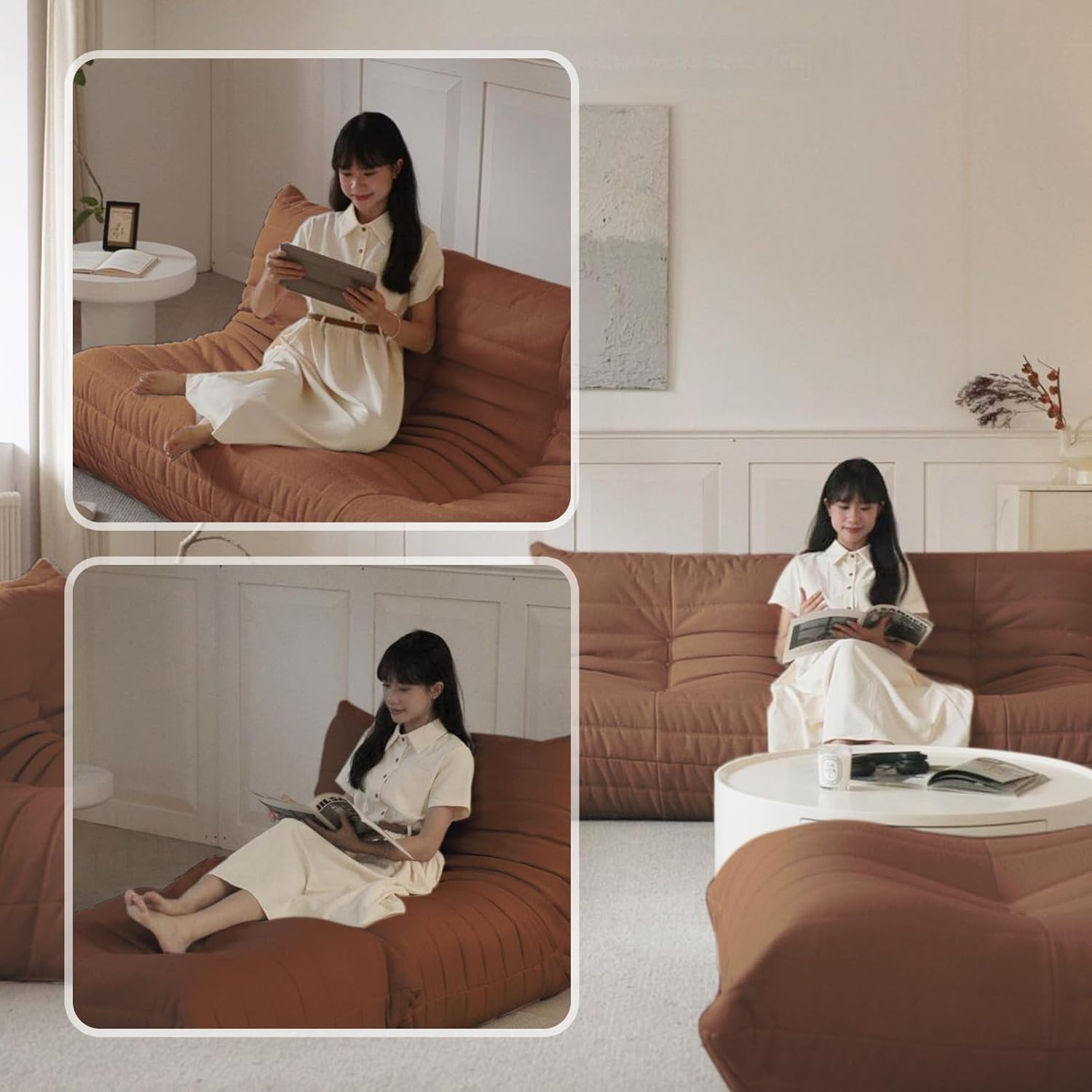 Luxury Sofa Couch Chair, Lazy Floor Seating, Fireside Bean Bag Chair, Ergonomic Tatami Sofa Lounger for Living Room, Bedroom, Office, 3 Seat, Brown