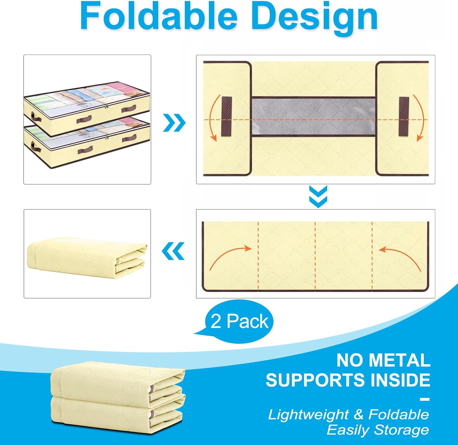 Budding Joy 6 Pack 90L Under bed Storage Containers Organizer Large Capacity Underbed Clothes Storage Bins Organization and Storage Bedroom Foldable Storage Bags with Clear Window Beige