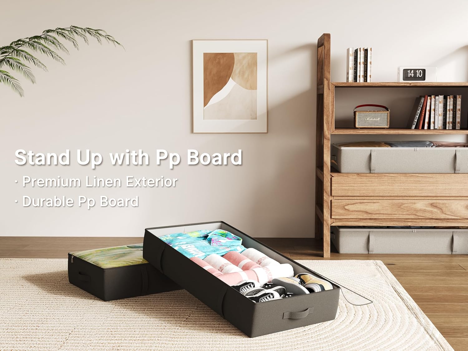 - High Quality Materials - Made of sturdy composite Linen fabric, the storage bins under the bed can hold bulky books and toys without falling apart. Durable handles and dual zippers make it easy to use in daily life. Transparent top cover helps find the items quckly