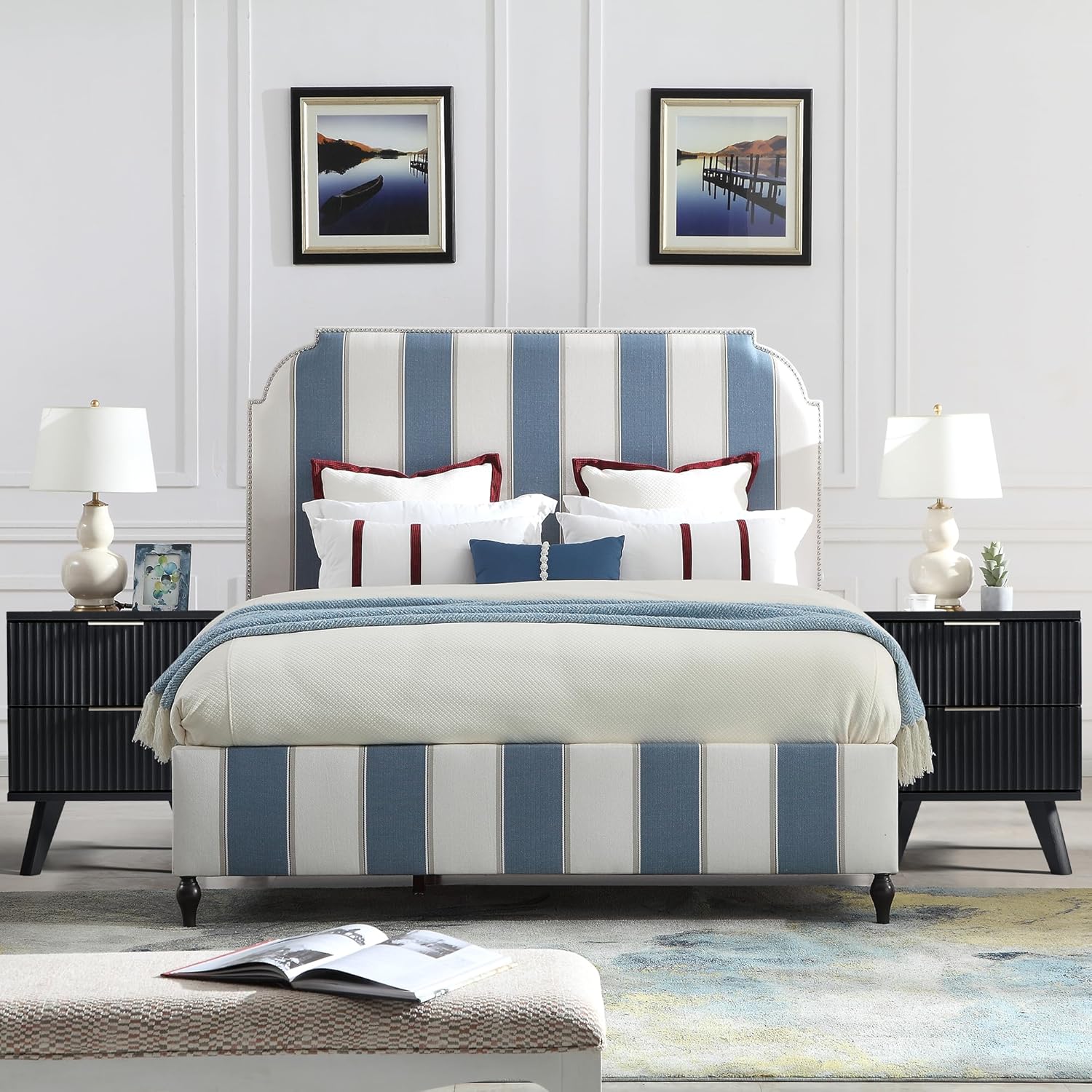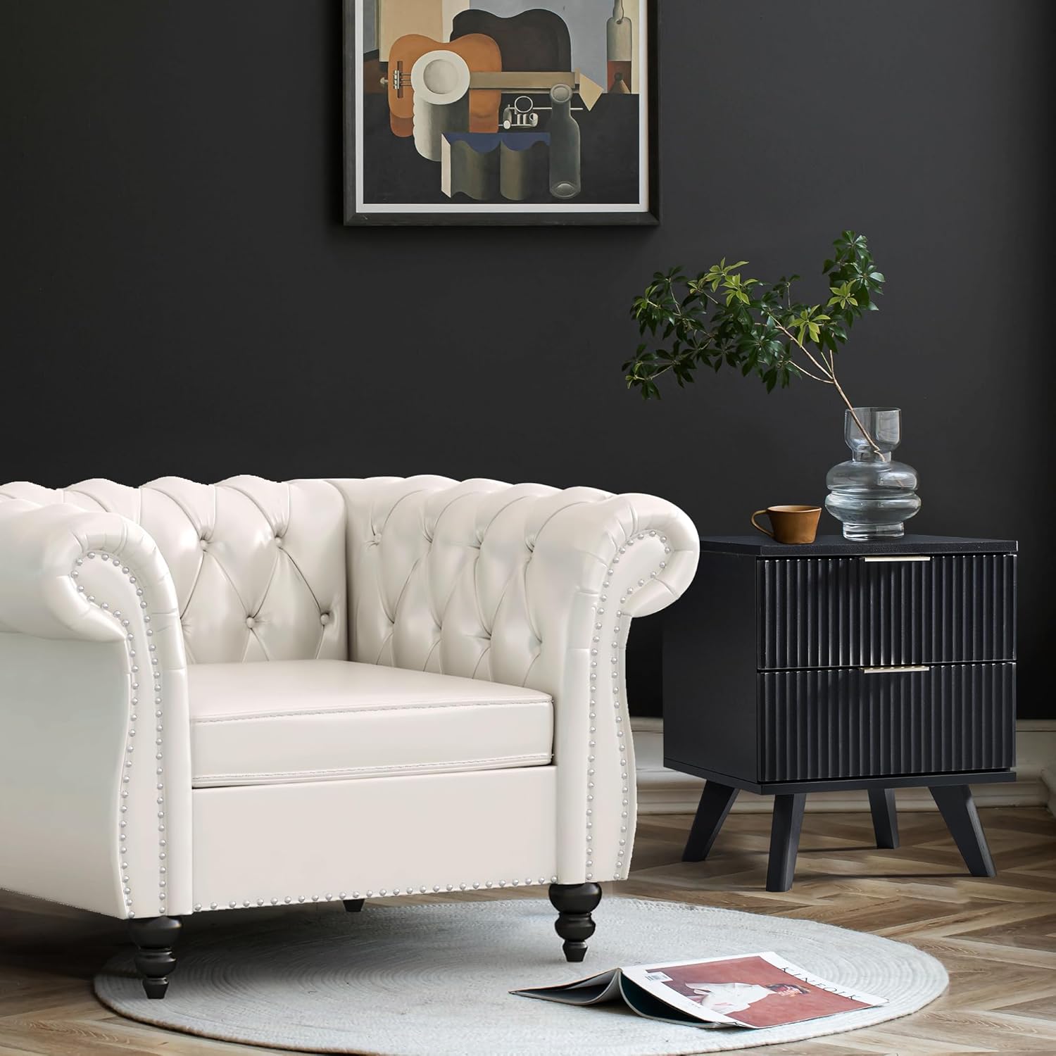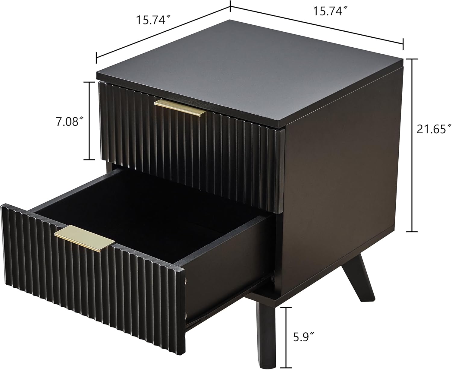- STYLISH DESIGN: The wood 2 drawers nightstand is fabricated through a special technology, the fluted waveform panel with sleek curved profile design is unique and elegant. Complete with aluminum handles, the smooth metal guide rail allows the drawer to be pulled out and closed easily and silently.The simple and modish design of the bedside furniture matches perfectly with any furnishing style