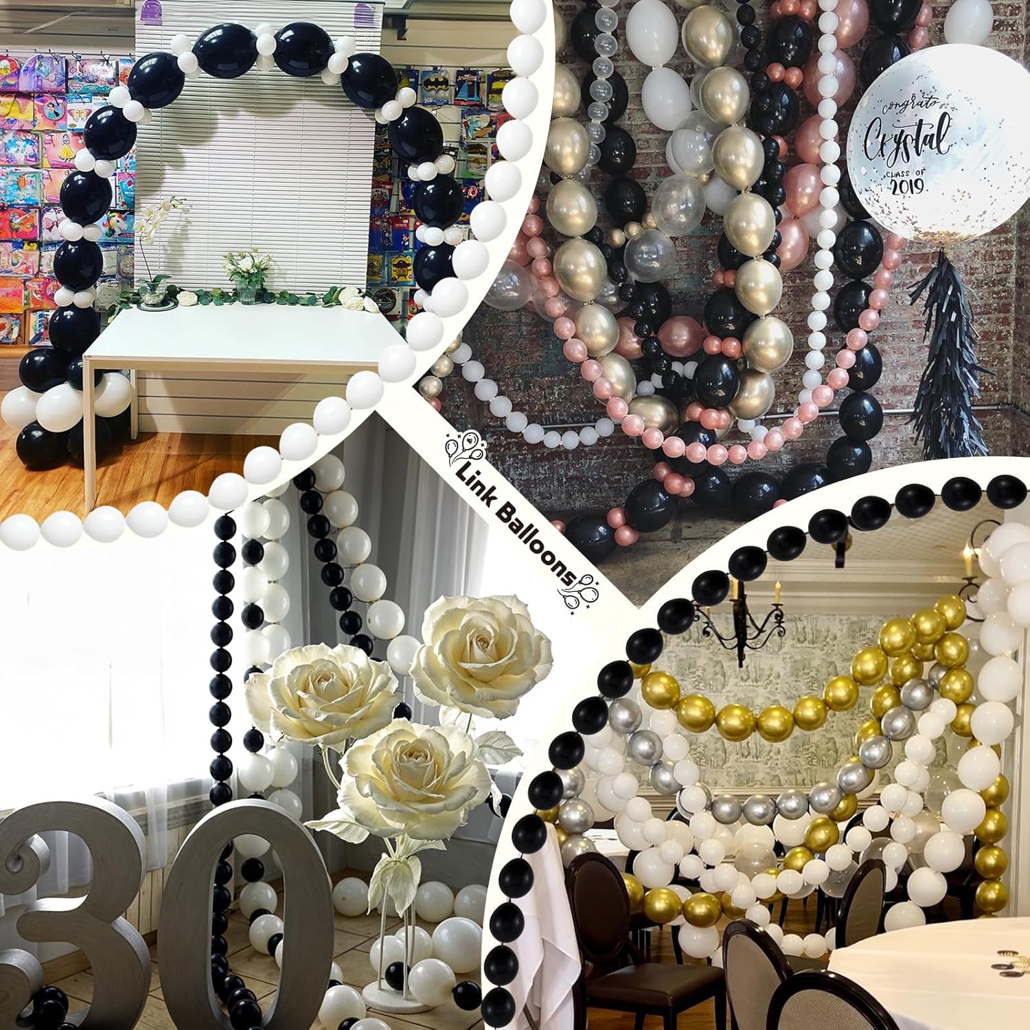 - 💫Diverse assembly - The linking balloons is an excellent choice for balloon chain decoration, balloon wall creation, and various balloon model making. It can be used for party decoration, it can be hung on the ceiling alone to form a hanging balloon chain, can be used for balcony balloon chain decoration, and can be freely matched and connected the black balloons and white balloons according to different styling needs.