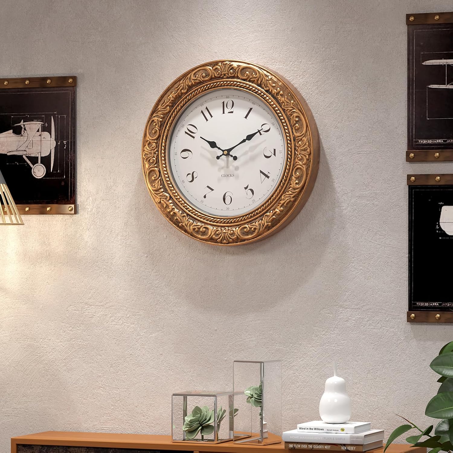 - EUROPEAN VINTAGE WALL CLOCK SIZE : Diameter 12 inch thickness 2 inch, this Menterry Antique Gold Wall Clock is designed in an elegant European vintage style, which can perfectly match any home decor. Giving a nostalgic or vintage decorative feel, it is a perfect gift for your family or friends.