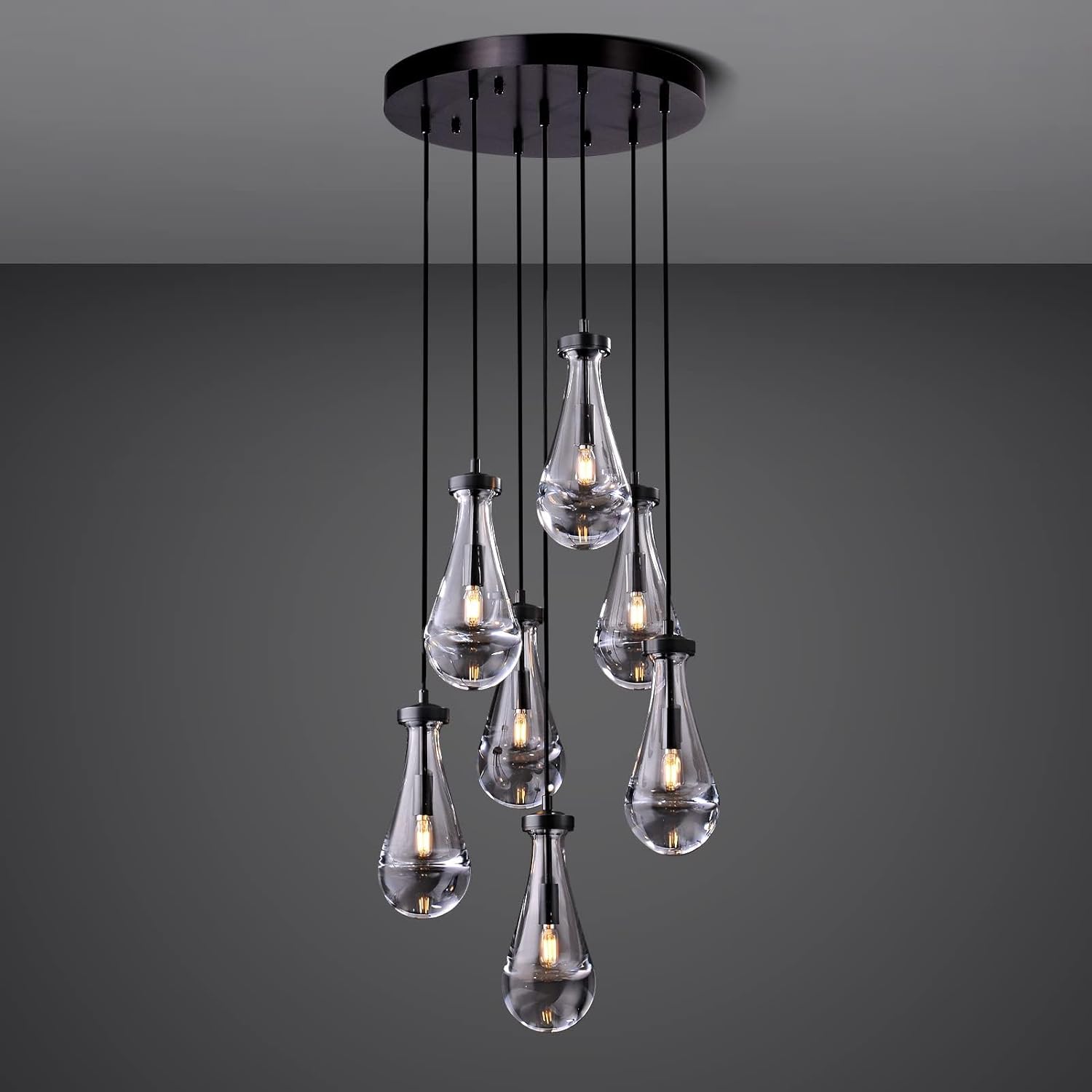 - 【Provide 2-Year Service】Black 7-light raindrop chandeliers for your kitchen island, bathroom, bedroom, foyer, hallway, staircase. Ideal chandelier for dining room, kitchen chandeliers over table, hanging pendant light, island pendant lights for kitchen.