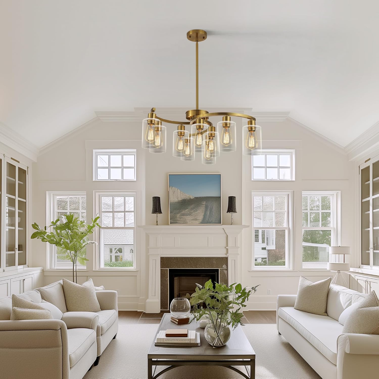 - [Dimmable]: Max 9 x 60W, E26 Base (bulb not included), compatible with LED, incandescent, CFL, halogen. Living room chandelier also compatible with dimmer, you can use a dimmable bulb to create a warm and relaxed atmosphere (Dimmer switch need to buy separately).